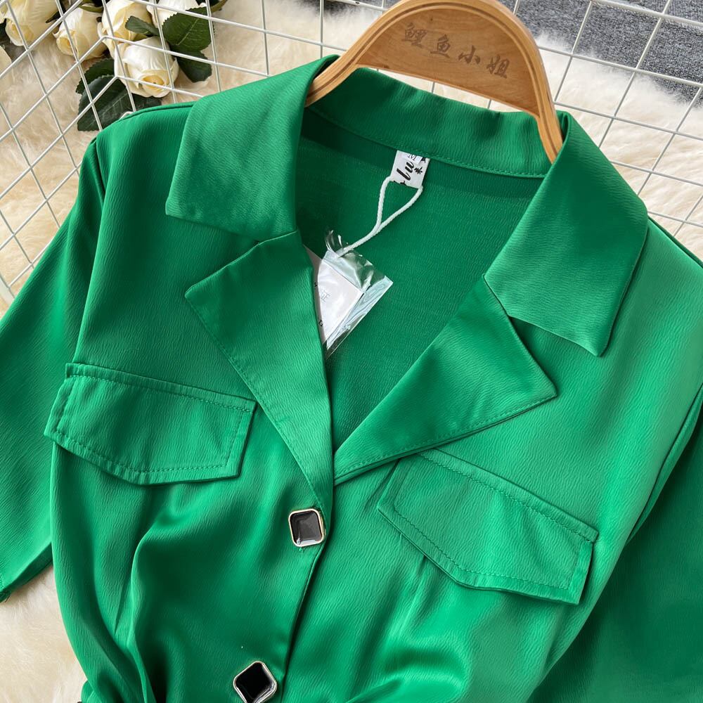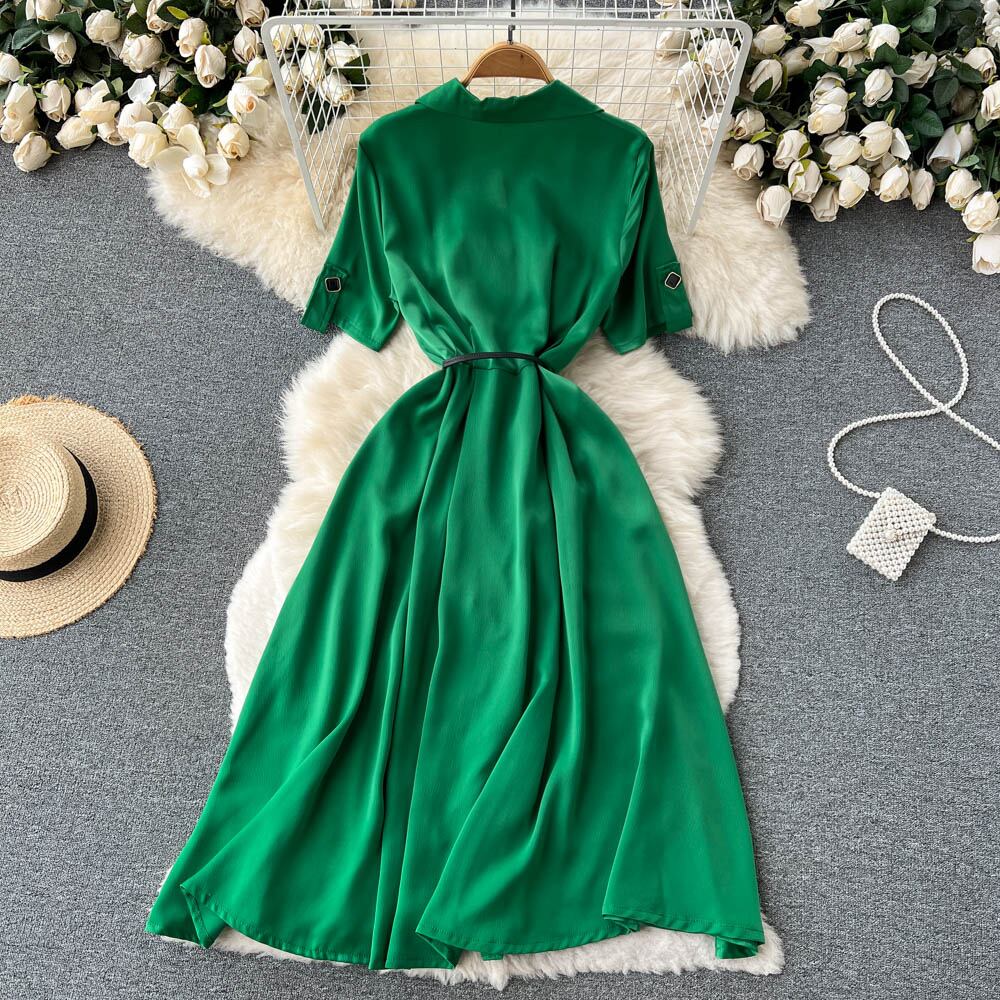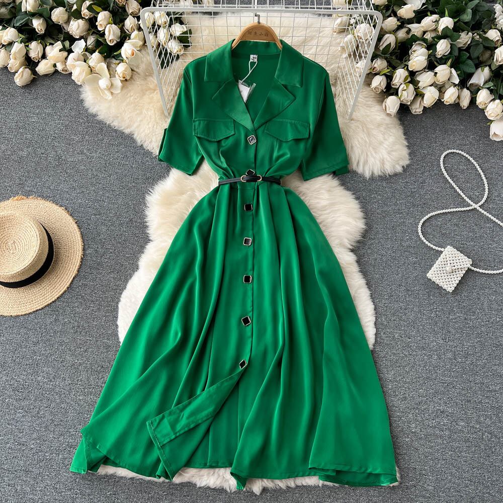夏の新しいフレンチレトロシャツドレスハイウエストヘップバーンスタイルウエストシングルブレストスーツカラーロングスカートトレンディ ハイウェスト サマー 夏物 lyxaj98963838994