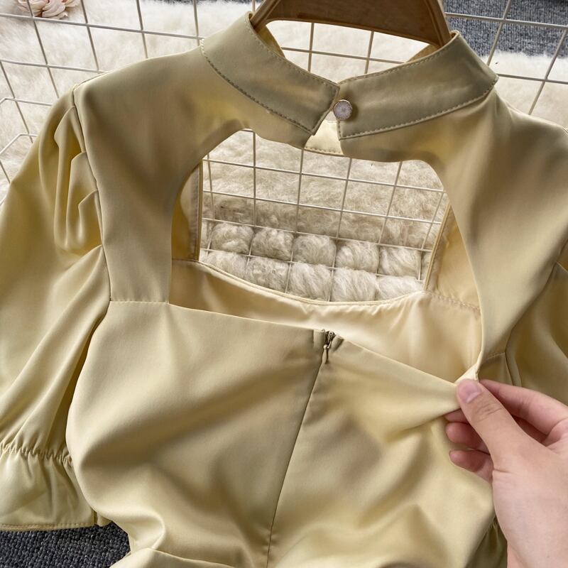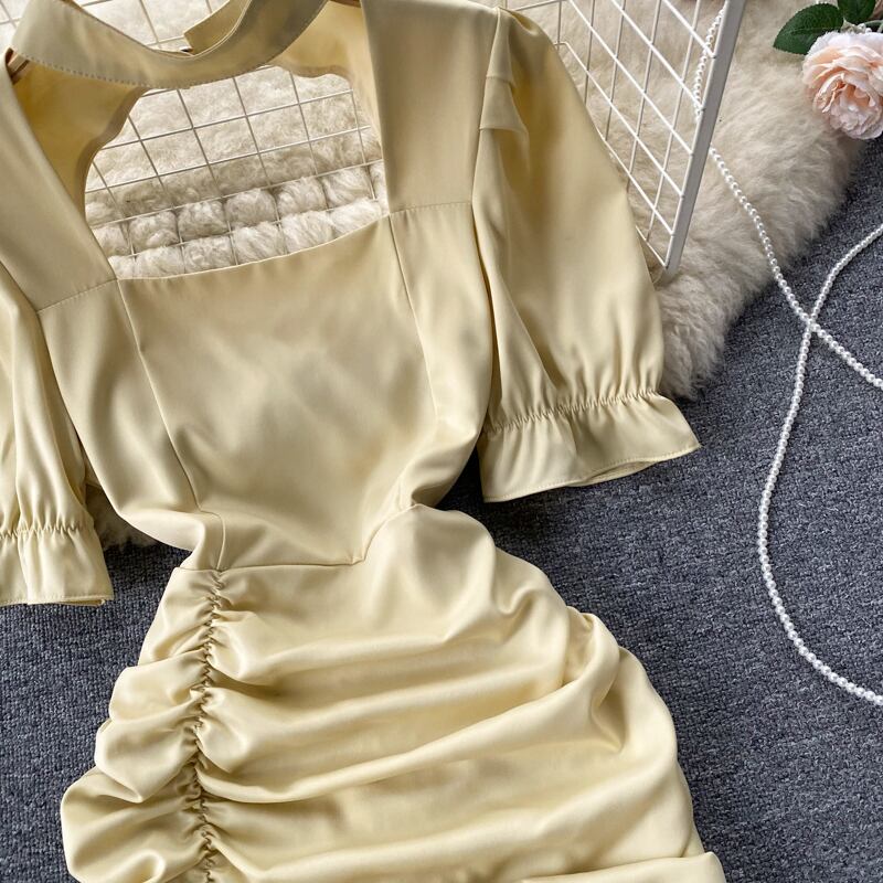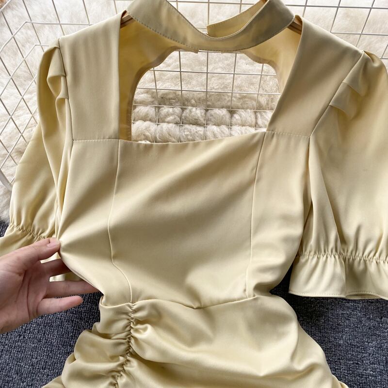 ファッショナブルな半袖無地の陰謀中空プリーツウエスト痩身ヒップフレンチドレス女性のセクシーなホットな女の子のスカート ソリッドカラー lyxaj45705082440