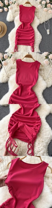 2022年夏の新しいプリーツ巾着レースアップドレスセクシーなノースリーブ気質レディバッグヒップホットガールショートスカート サマー 夏物 lyxaj33855798975