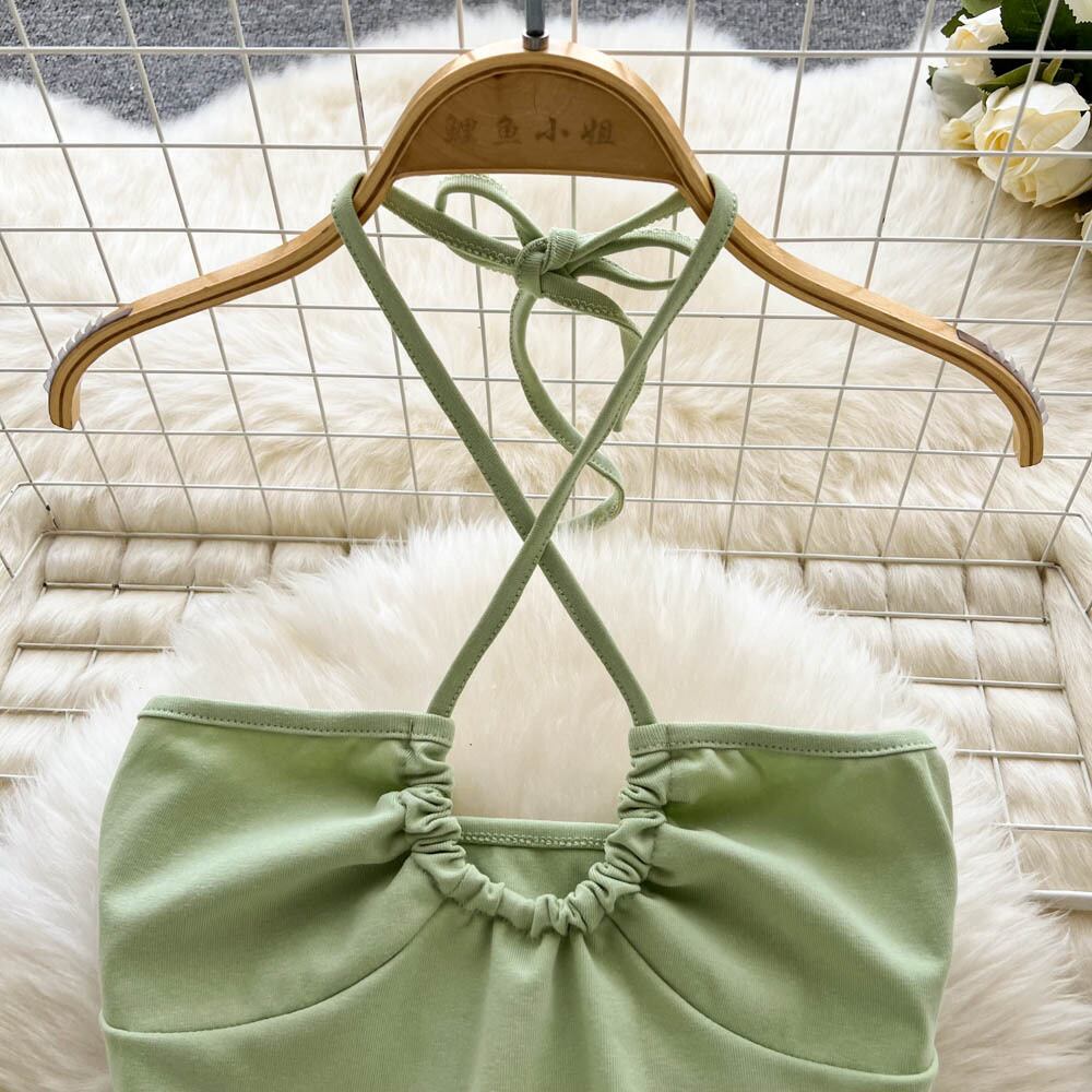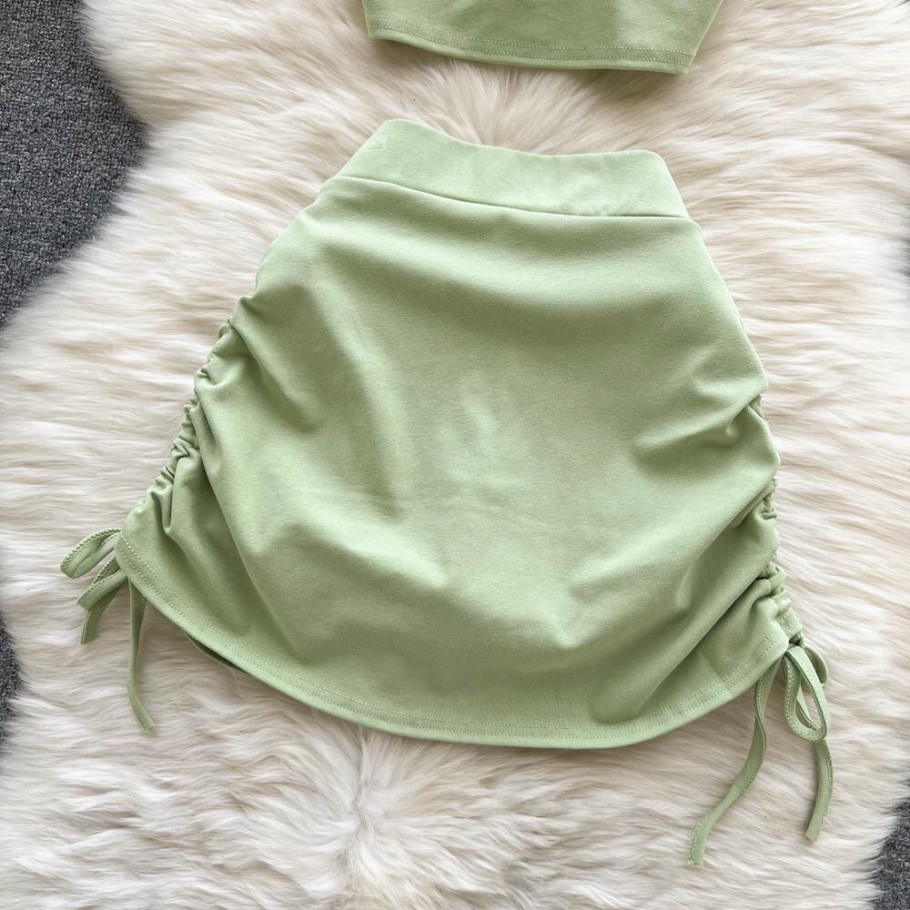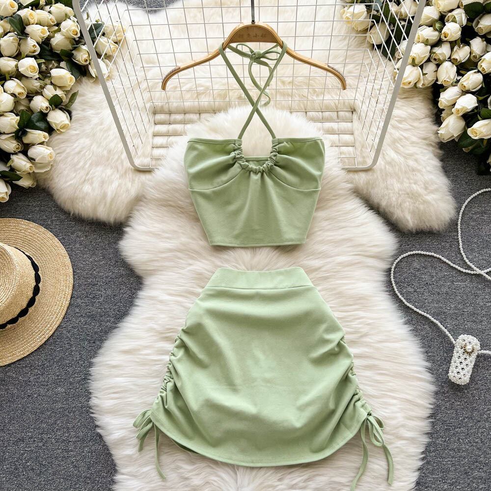 セクシーなホットガールピュアデザイアスタイルスーツスカート女性ホルターネックチューブトップレースショートトップバッグヒッププリーツショートスカートツーピースセット lyxaj91747733249