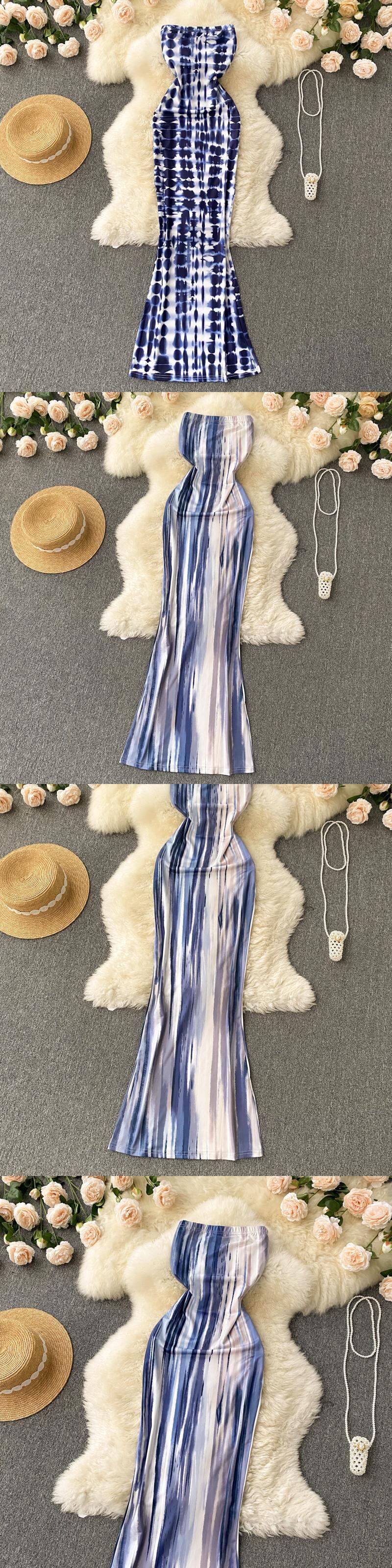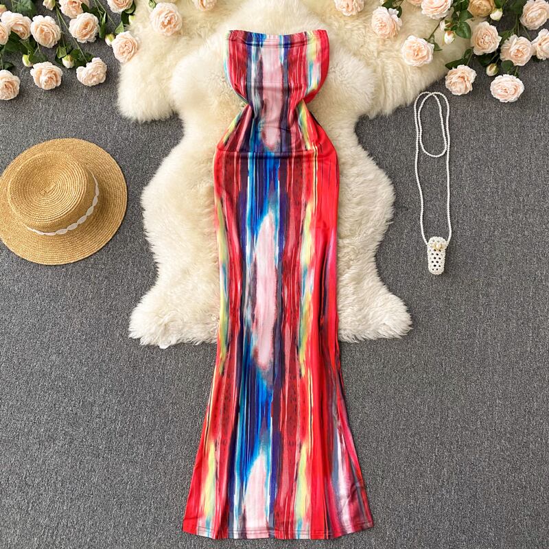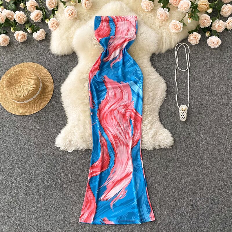 2022年夏の新しいヨーロッパとアメリカのニッチインパーソナリティ印刷スリムセクシーヒップパックロングスカートチューブトップドレス サマー 夏物 ヨーロピアン lyxaj37032979514