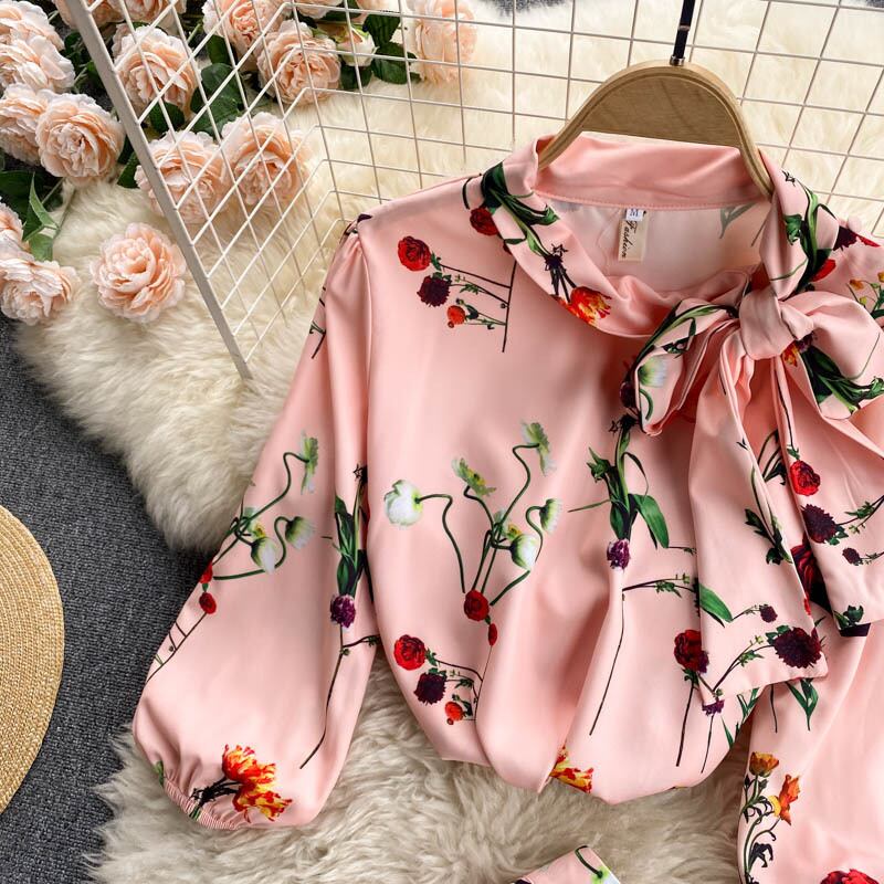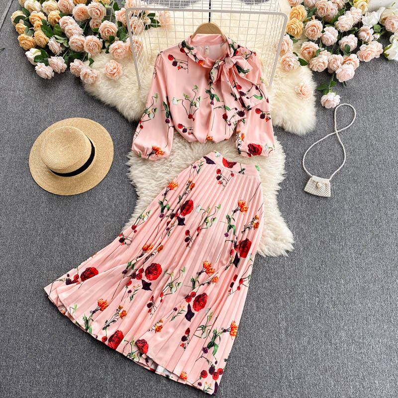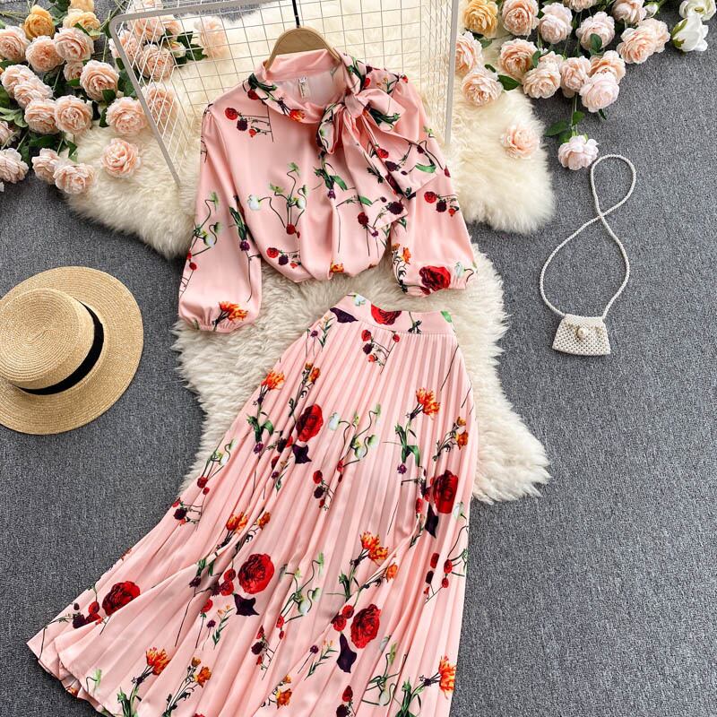 セレブ気質スーツ2021年新作レディースシャツエレガントプリントミドル丈スカートファッションツーピースセット lyxaj87737067699