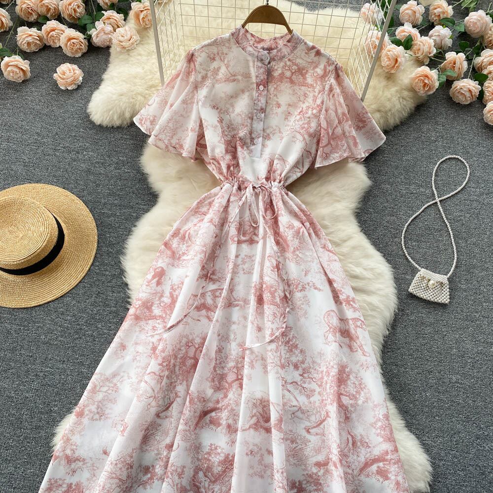 2022年の新しい春のコットンプリントパターン、裏地付きファッション大スカート気質フェミニンなロングドレス スプリング 春物 lyxaj39328773474