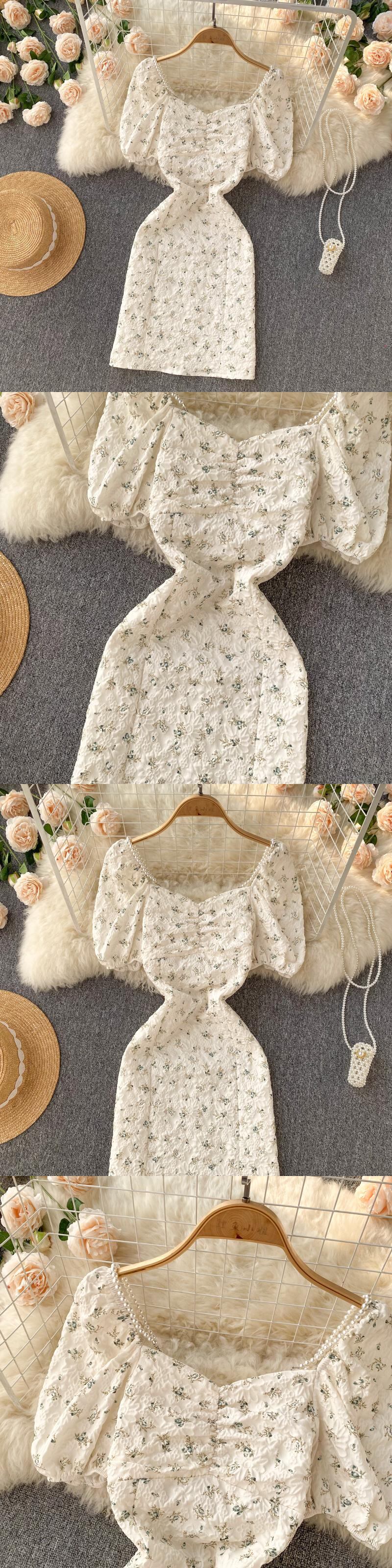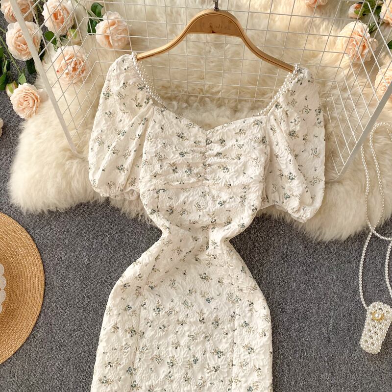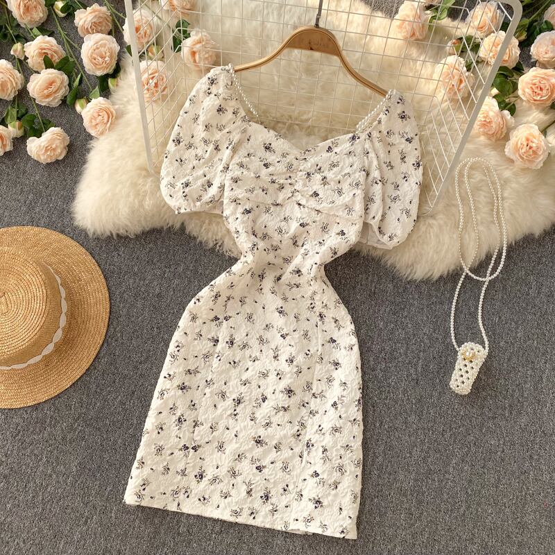2022年夏の新しい小さなフランスのレトロなベルフラワーフローラルスクエアカラードレス女性のウエストスリムフェアリースカート サマー 夏物 花柄 フラワーデザイン スクウェア lyxaj99430753795
