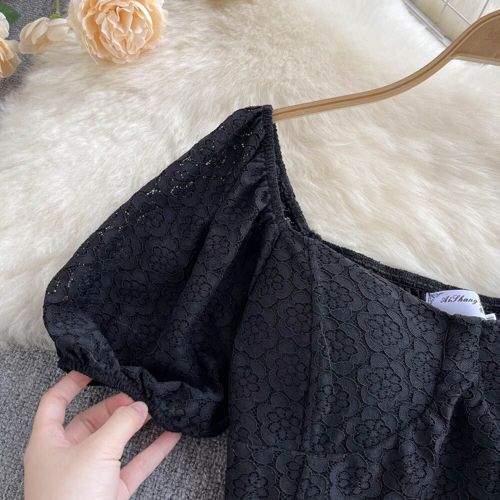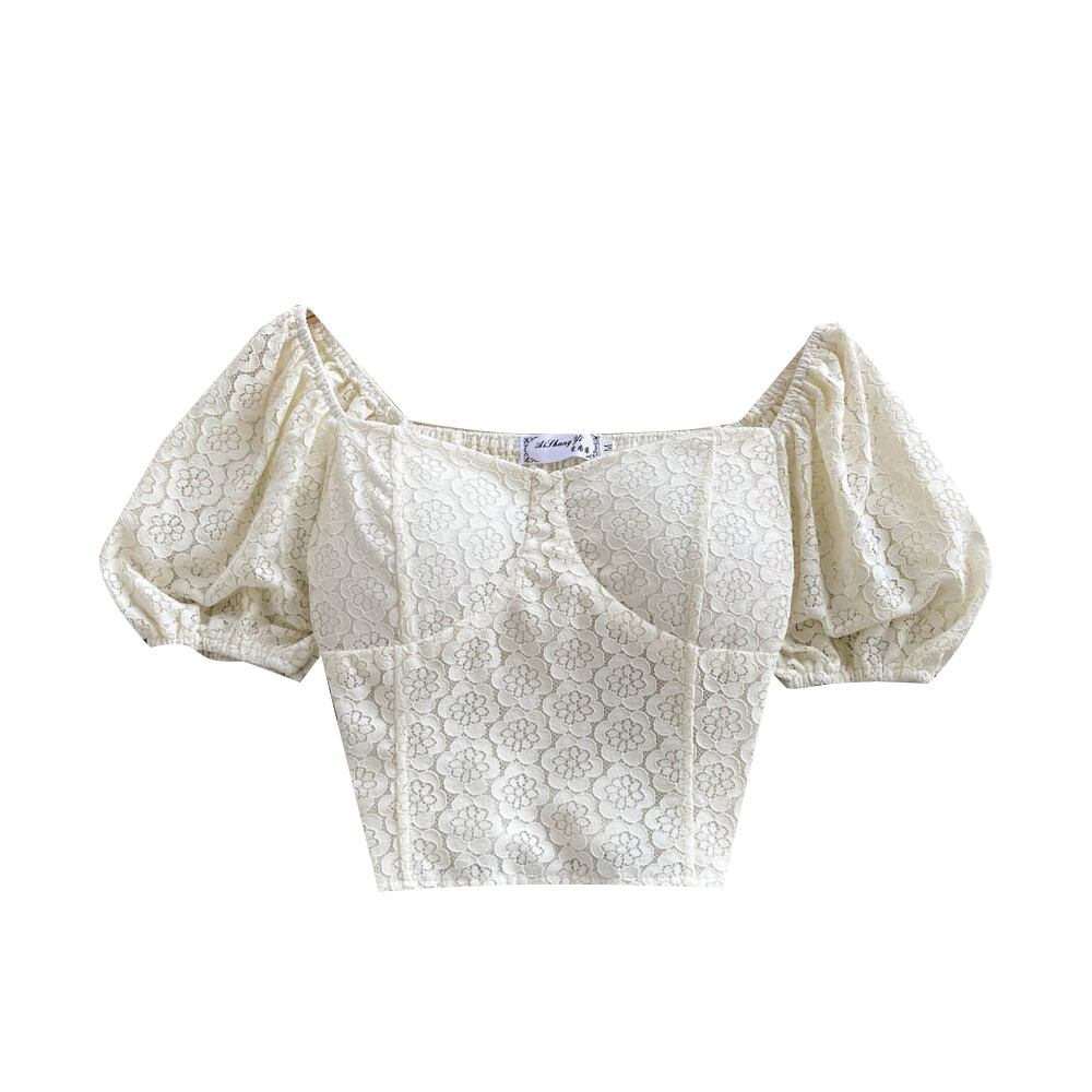レースジャカードくり抜いた陰謀デザインセンスニッチ文芸トップ韓国版半袖スクエアネックレトロ無地シャツタイド ソリッドカラー スクウェア lyxaj10725294017