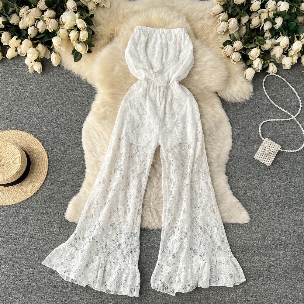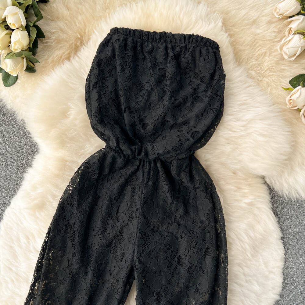 夏の新しいハイウエストチューブトップレースジャンプスーツレディースウィンドウエストは細いワイドレッグストレートプリーツジャンプスーツ女性です サマー 夏物 lyxaj50403107075