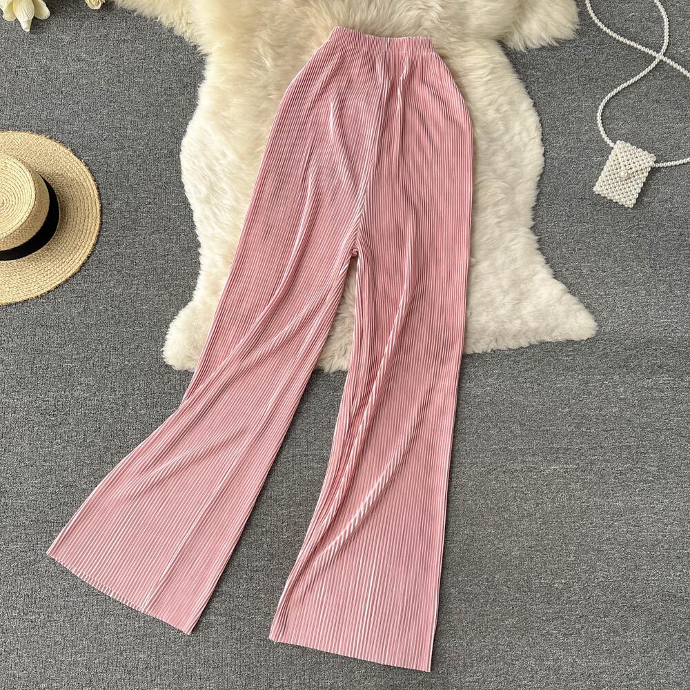 夏の新しい香港スタイルのスーツ女性のショートチューブトップトップ女性のハイウエストストレートワイドレッグパンツツーピースモップパンツ ハイウェスト サマー 夏物 ワイドパンツ lyxaj83204713261