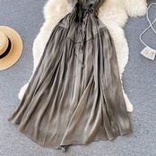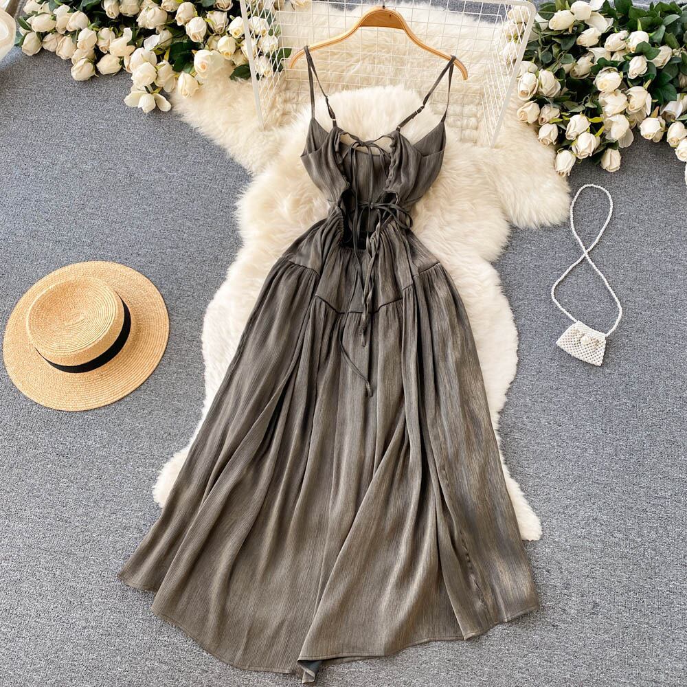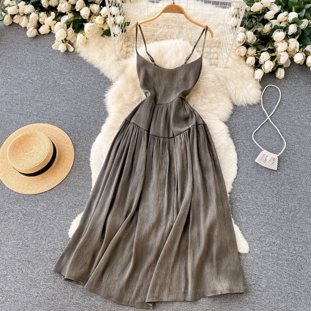 夏の新しいフレンチレトロヘップバーンサスペンダープリーツミドル丈ラージスイングスカートボトミングルーズで薄いドレス サマー 夏物 lyxaj17716672020