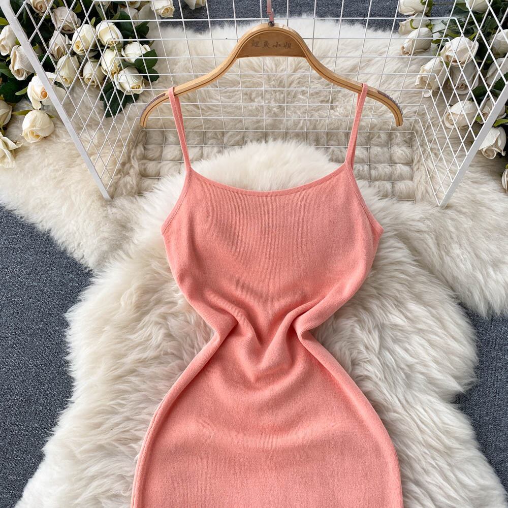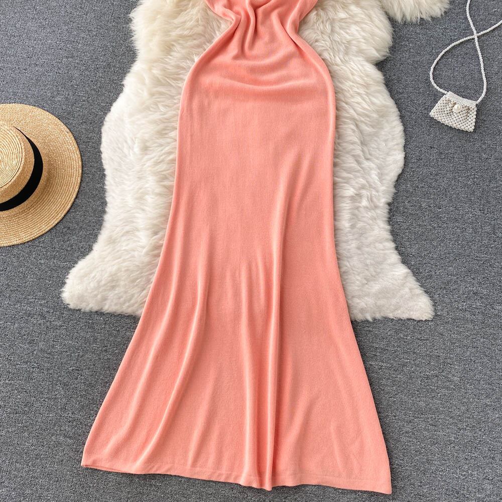 ホットな女の子のセクシーな気質の女性の無地のニットドレス女性2022年夏の新しいウエストスリムフィッシュテールドレス サマー 夏物 ソリッドカラー lyxaj97782023300