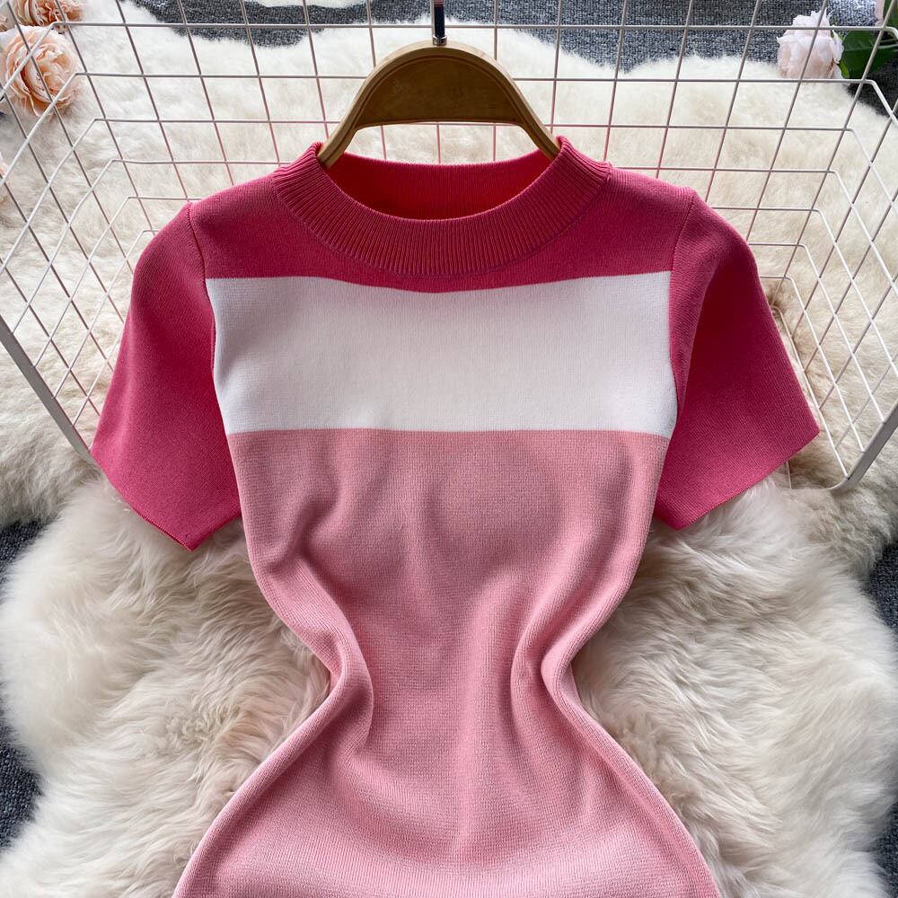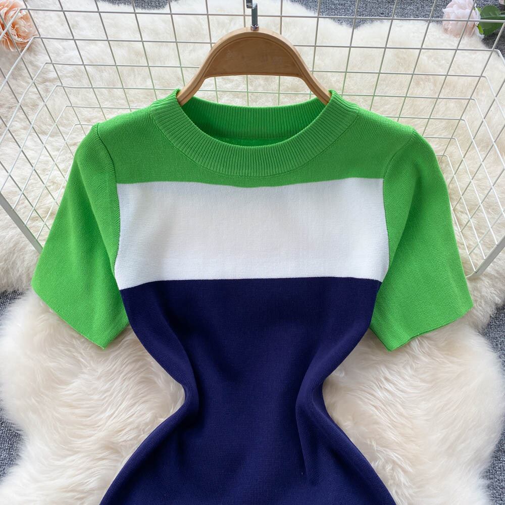 対照的なカラーデザインのラウンドネックニットドレス女性の2022年夏の新しいスリムフィットとスリムな気質パッケージヒップスカート サマー 夏物 Oネック lyxaj69623982895