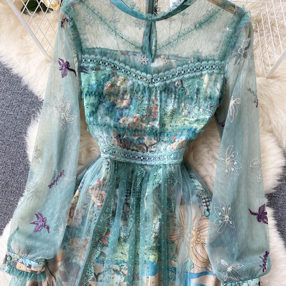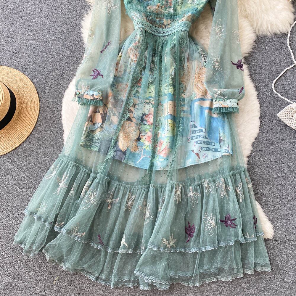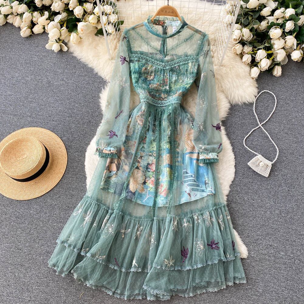 2022年春夏新作フェアリースカート気質スーパーフェアリーロータスリーフウエストスリミングロータスリーフメッシュプリーツドレス スプリング 春物 サマー 夏物 lyxaj69949576928