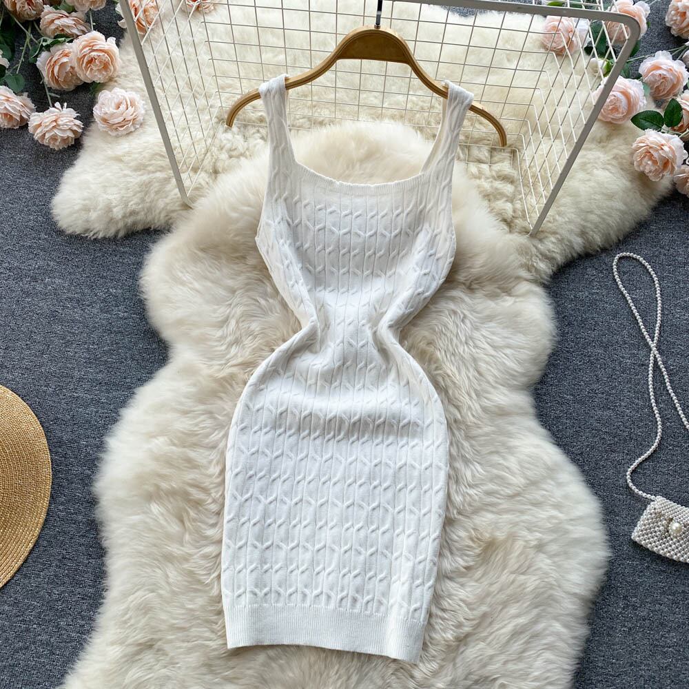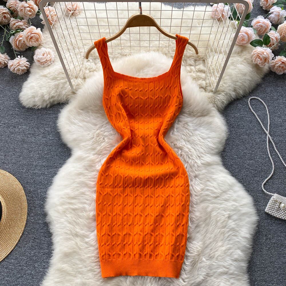 夏の新しいホットガールオールマッチサスペンダーセクシードレスレディースファッションライト成熟したスタイル自己栽培オールマッチツイストニットスカート サマー 夏物 lyxaj35529001323