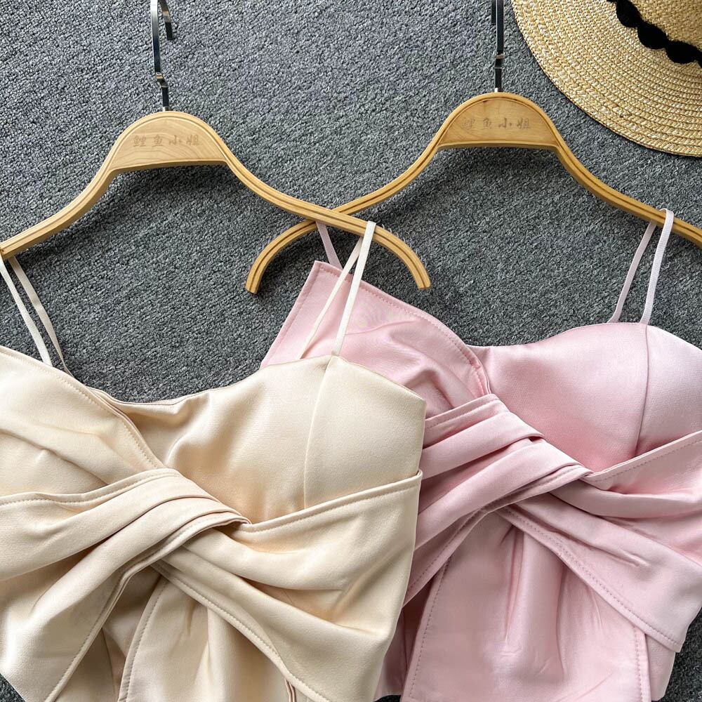 夏の新作インオープンバックチェストクロスボウハイウエストショートセクションおへそオールマッチキャミソールトップトレンディ ハイウェスト リボン サマー 夏物 lyxaj36119163871
