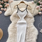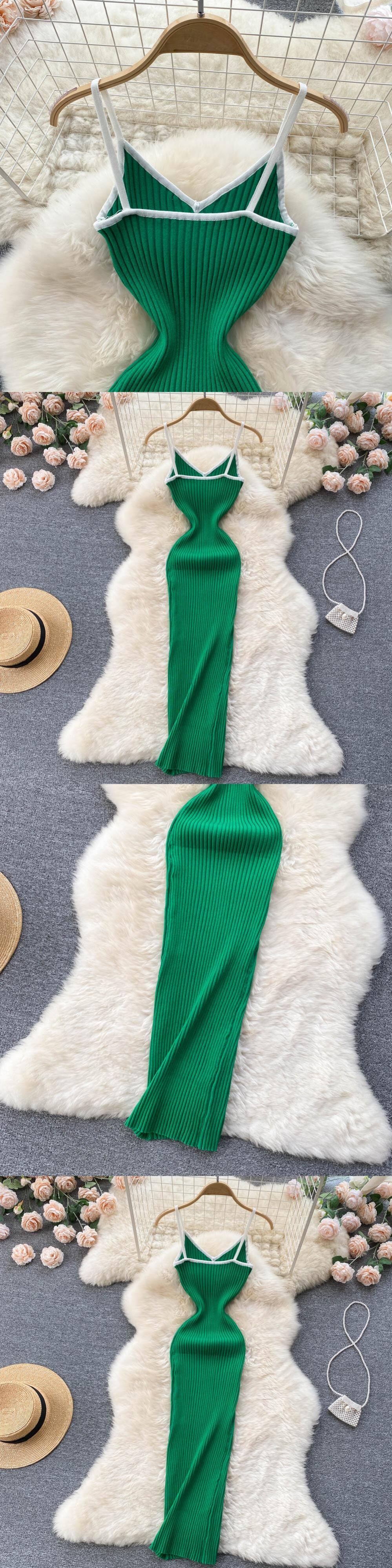 2022年夏の新しい韓国語バージョンは、膝の長いスカートの上にフレンチニットウエストとスリムなヒップドレスの女性用サスペンダーを挿入します ロング サマー 夏物 スリムヒップ lyxaj42878403309