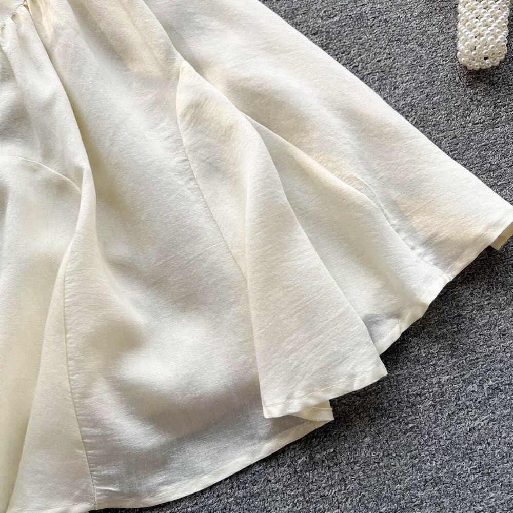 レトロなフレンチコートスタイルのハイエンドサテンプリーツスリムフリルスリングハイウエストプリンセスふくらんでいるドレス ハイウェスト lyxaj21393590530