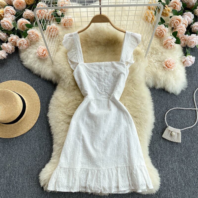 年齢を減らす真菌エッジサスペンダードレス女性のサマードレス2021新しい小さなスリムショートフリルファーストラブドレス 夏物 lyxaj9722975891