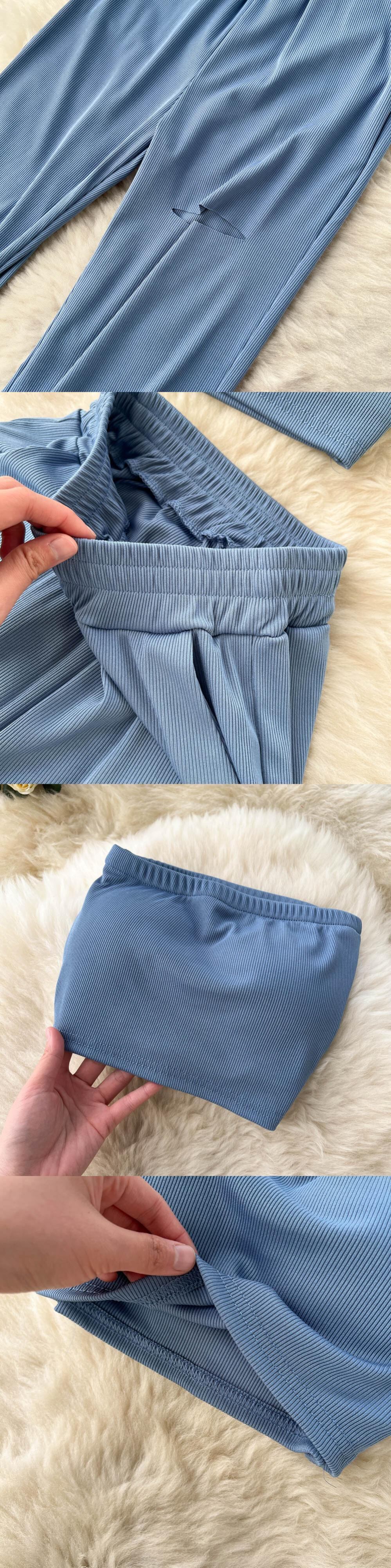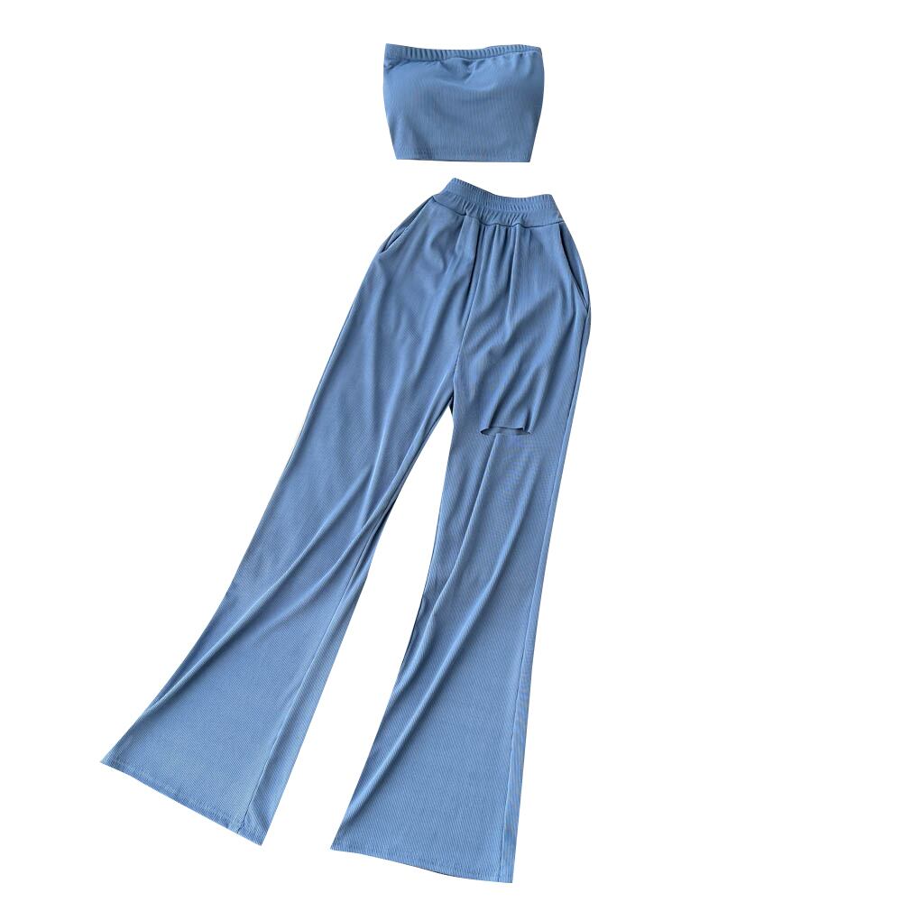 ハイウエストの細いワイドレッグパンツ韓国のストレートカジュアルパンツツーピーススーツワンショルダーホットガールチューブトップショートトップ lyxaj59499582244