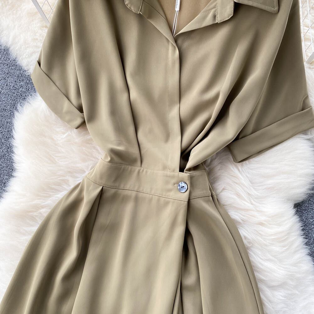 フランスの無地気質ウエストネクタイ半袖シャツドレス女性文学の女神ファン大きな膝丈のスカート ソリッドカラー lyxaj39615648203