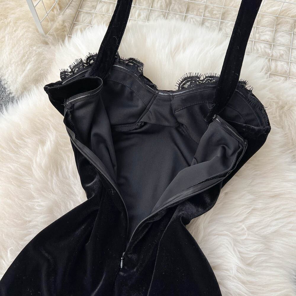 テンペラメントフレンチレトロサスペンダースカートスプリットドレスベルベットボトミングスカートセクシーミドル丈ホルターネックパッケージヒップスカート lyxaj78394531963