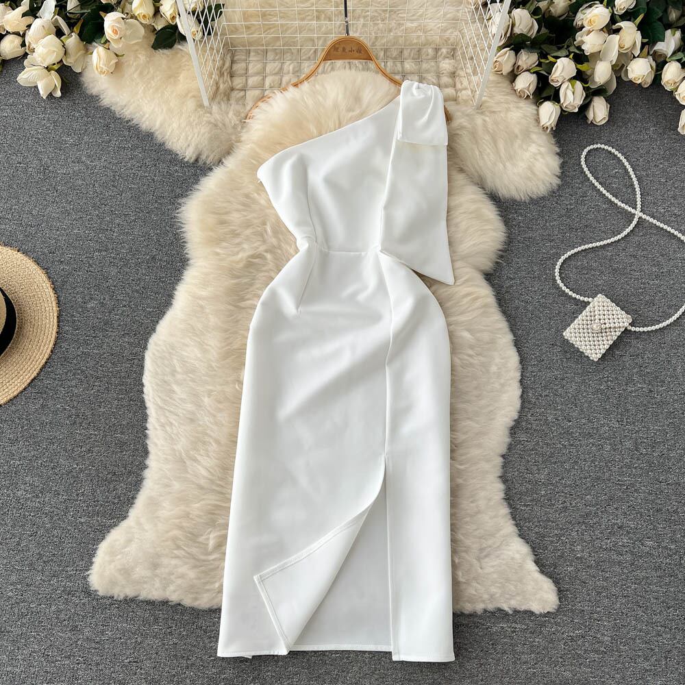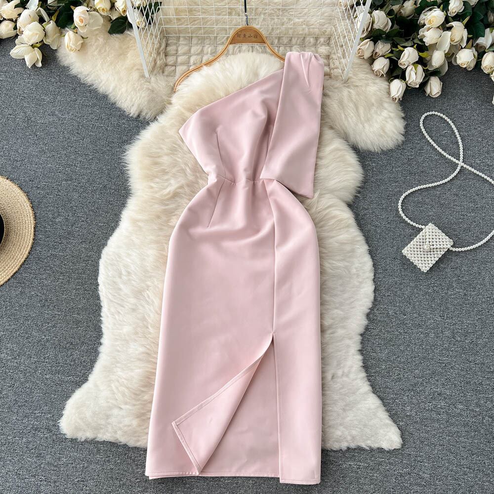 夏の新しいワンショルダーサスペンダーウエスタンスタイルセクシーなオフショルダーミドル丈フレンチレトロスリムスリムドレスレディースタイド サマー 夏物 lyxaj67397366911