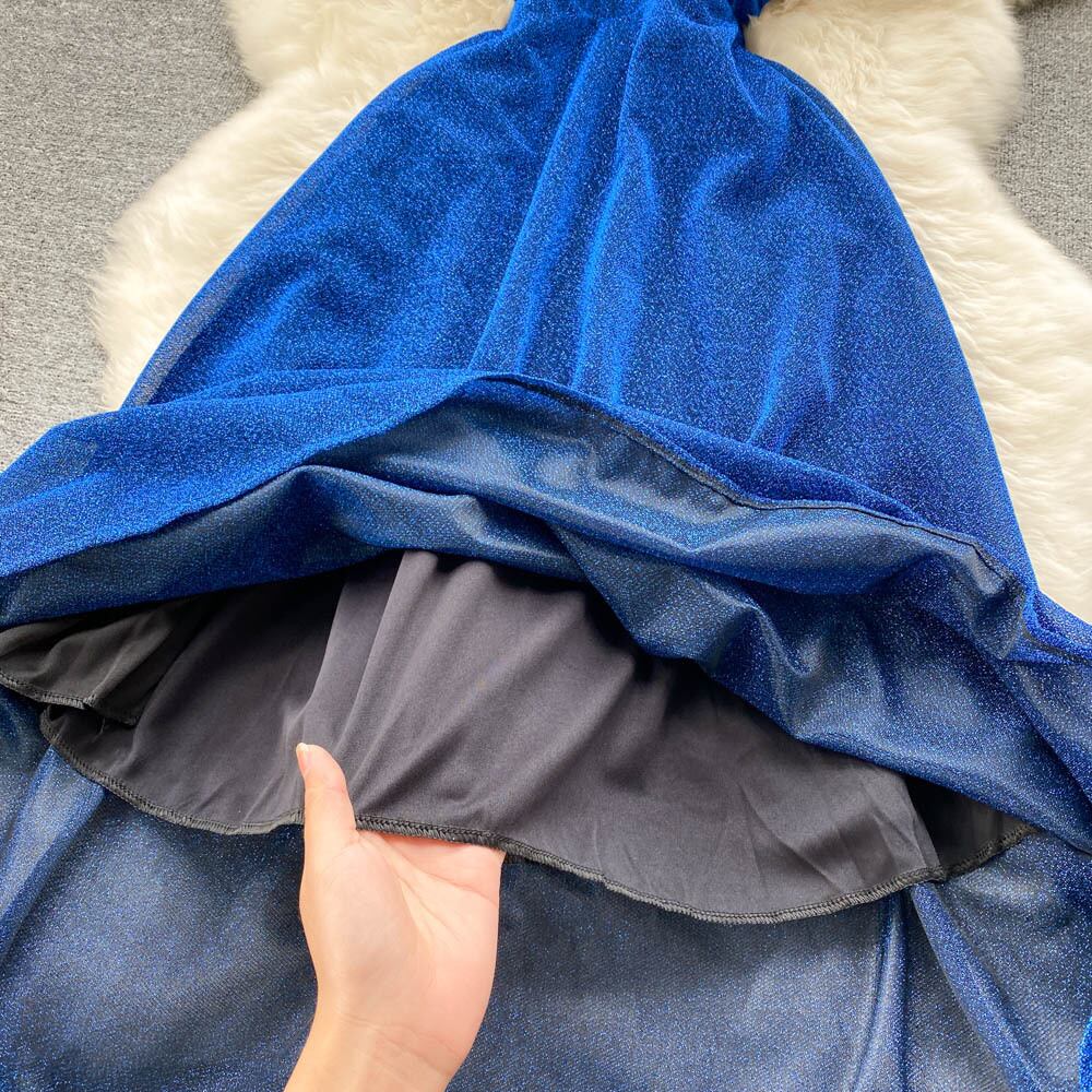 明るいシルクのイブニングドレススカート女性の夏の新しい気質軽い豪華な有名人の女神ファンハイウエストスリムデザインドレス ハイウェスト サマー 夏物 lyxaj27897623167