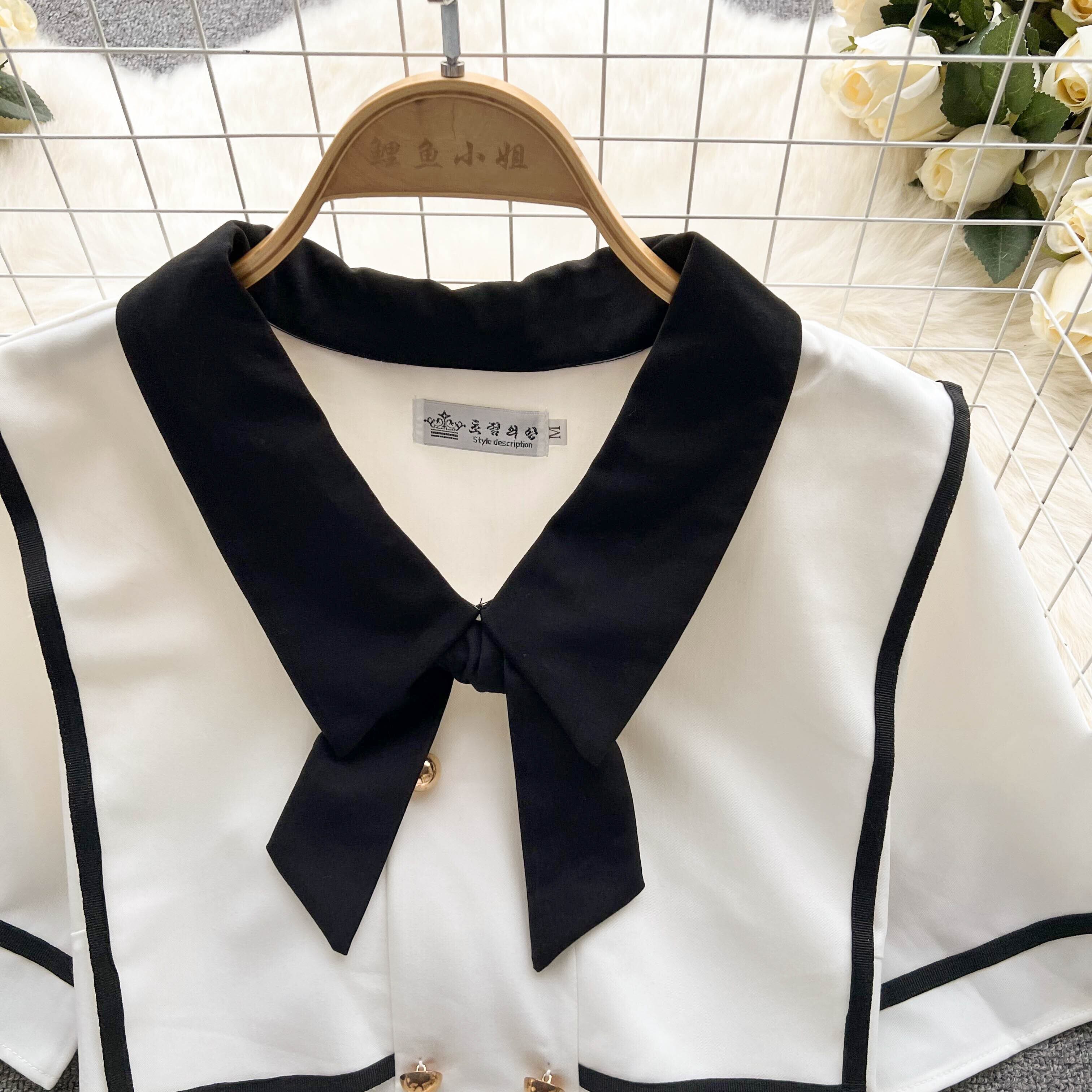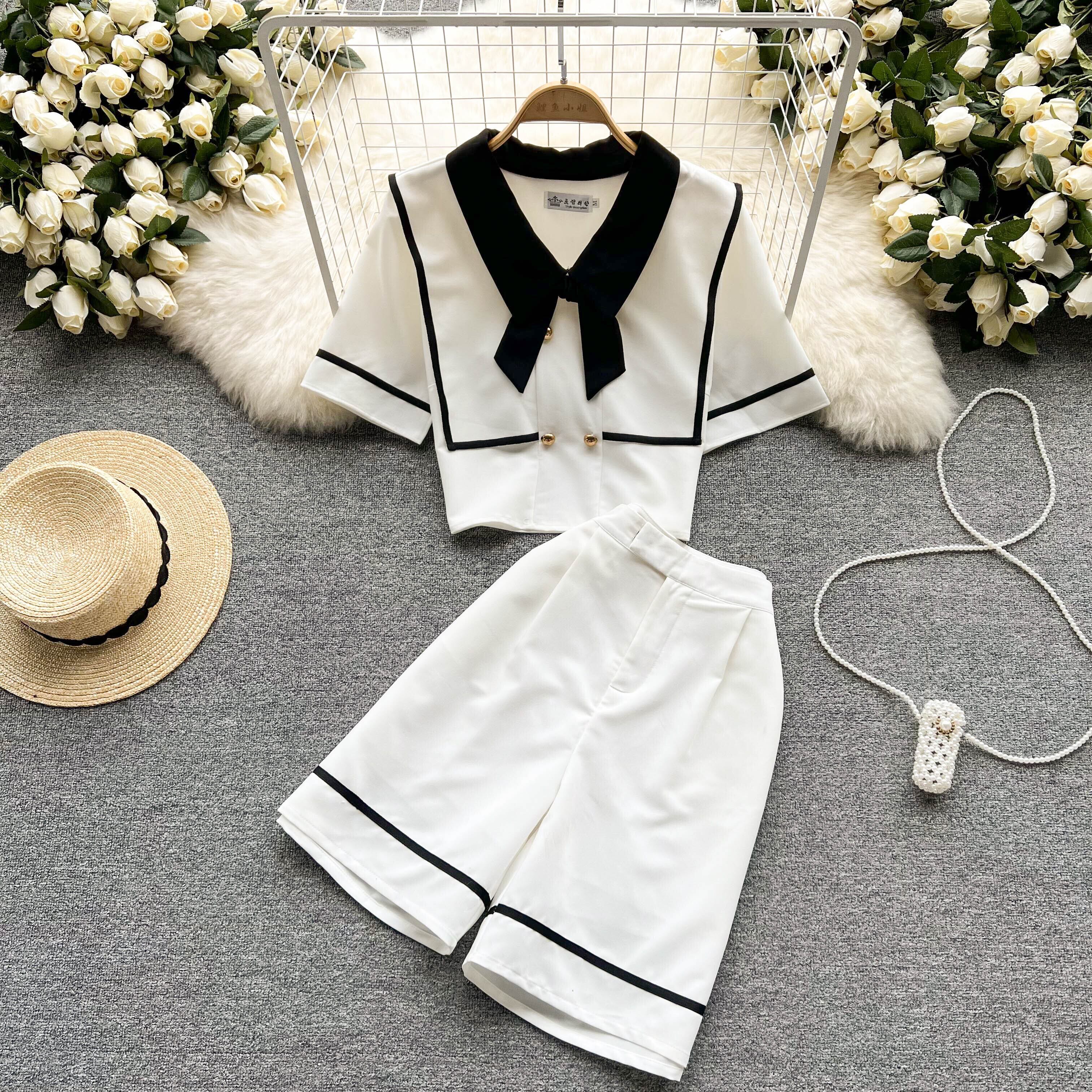 Xiaoxiangfengレディース気質スーツ女性夏新作Vネックコントラストカラーショートトップ5点パンツショーツツーピースセット サマー 夏物 ブルマー lyxaj75676992957