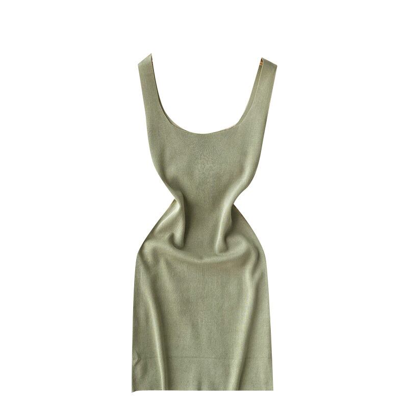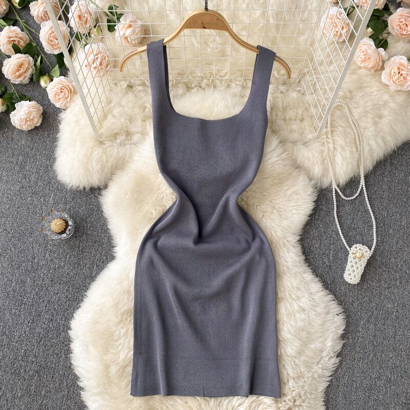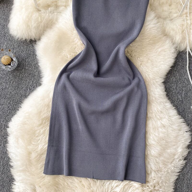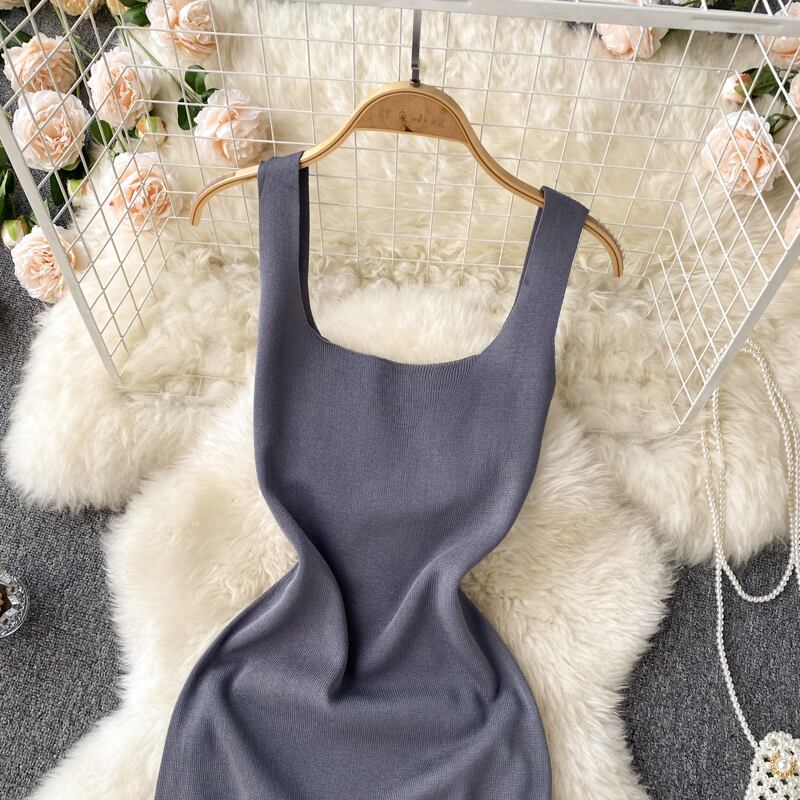 四角い首の背中の開いたサスペンダードレス、ヒップとウエストの気質ネットレッドシンプルなひざとヒップの折り目セクシーなロングスカート スクウェア lyxaj36004714839