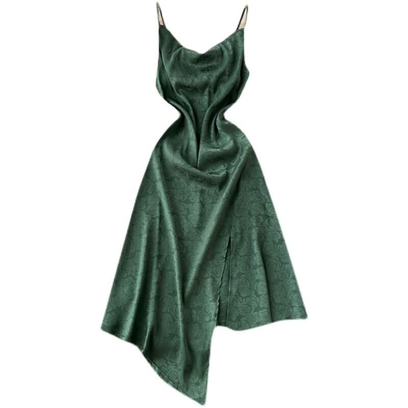 セレブ気質Vネックバックレスサスペンダードレスレディースサマーウエストスリミングエレガントイブニングドレススカート 夏物 lyxaj68067635293