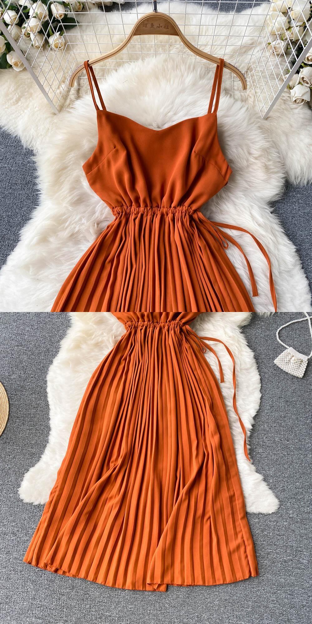 夏の韓国版ファッション年齢を減らす甘い気質のスクエアネックサスペンダードレス巾着ネクタイは薄いプリーツミドルスカートを示しています 大人ガーリー スウィート キュート カジュアル サマー 夏物 スクウェア lyxaj21665813397