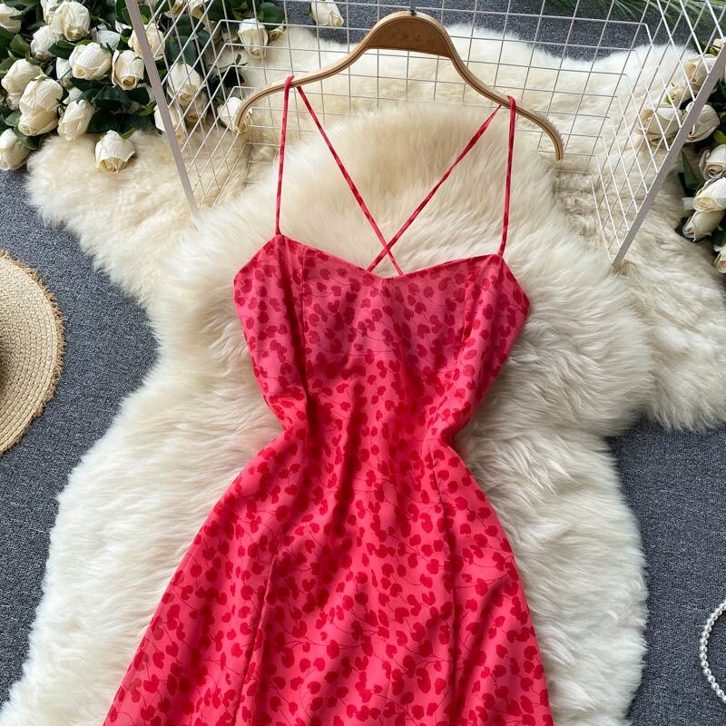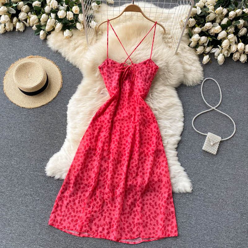 シーサイドホリデードレスウエストサマーニューセクシーバックレススリムミドル丈気質スクエアネックサスペンダーニースカート 夏物 スクウェア lyxaj97167542178
