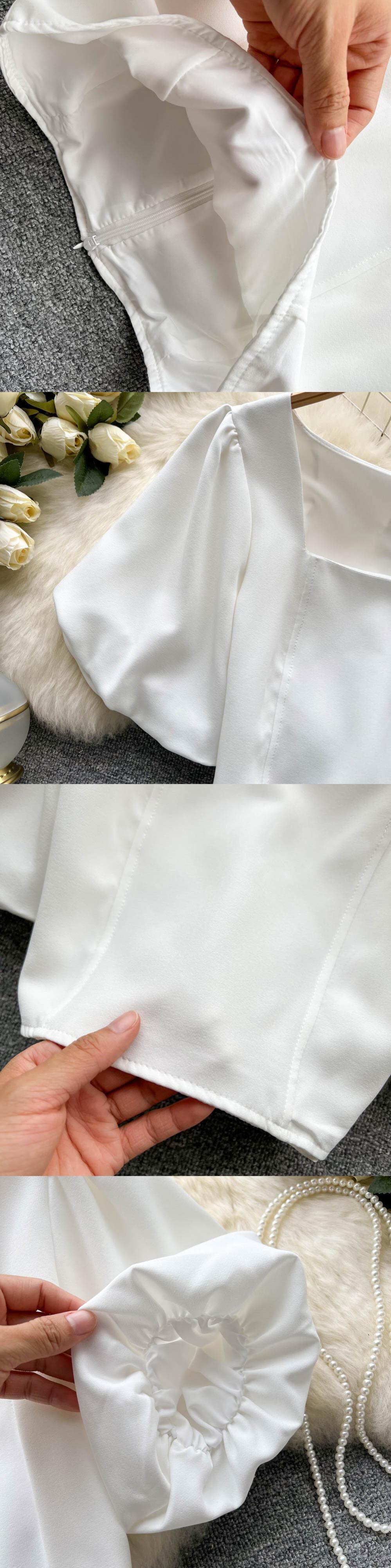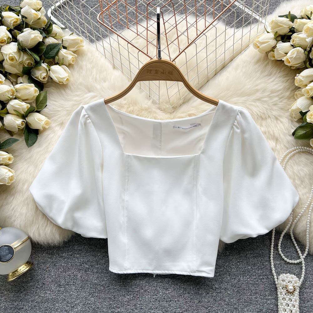2022年夏の新しいサテンスクエアカラースリムフィットと薄いオールマッチスモールシャツトップ半袖ハイウエストフレッシュでシックなシャツ ハイウェスト ショート ハーフスリーブ サマー 夏物 スクウェア lyxaj59700554632