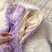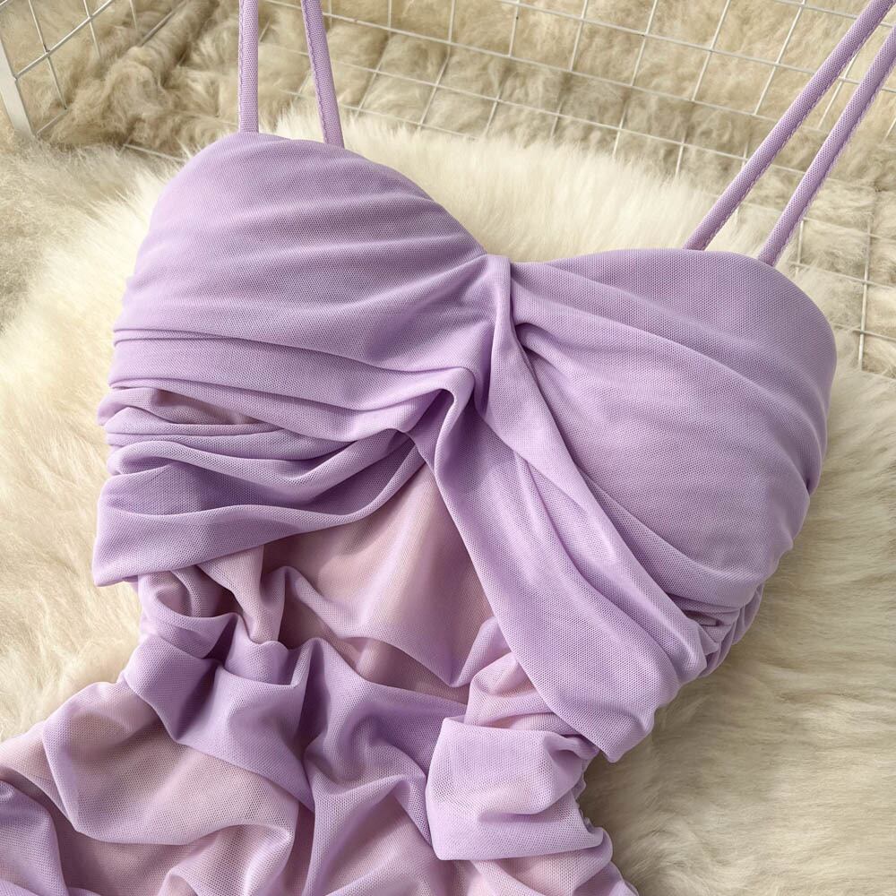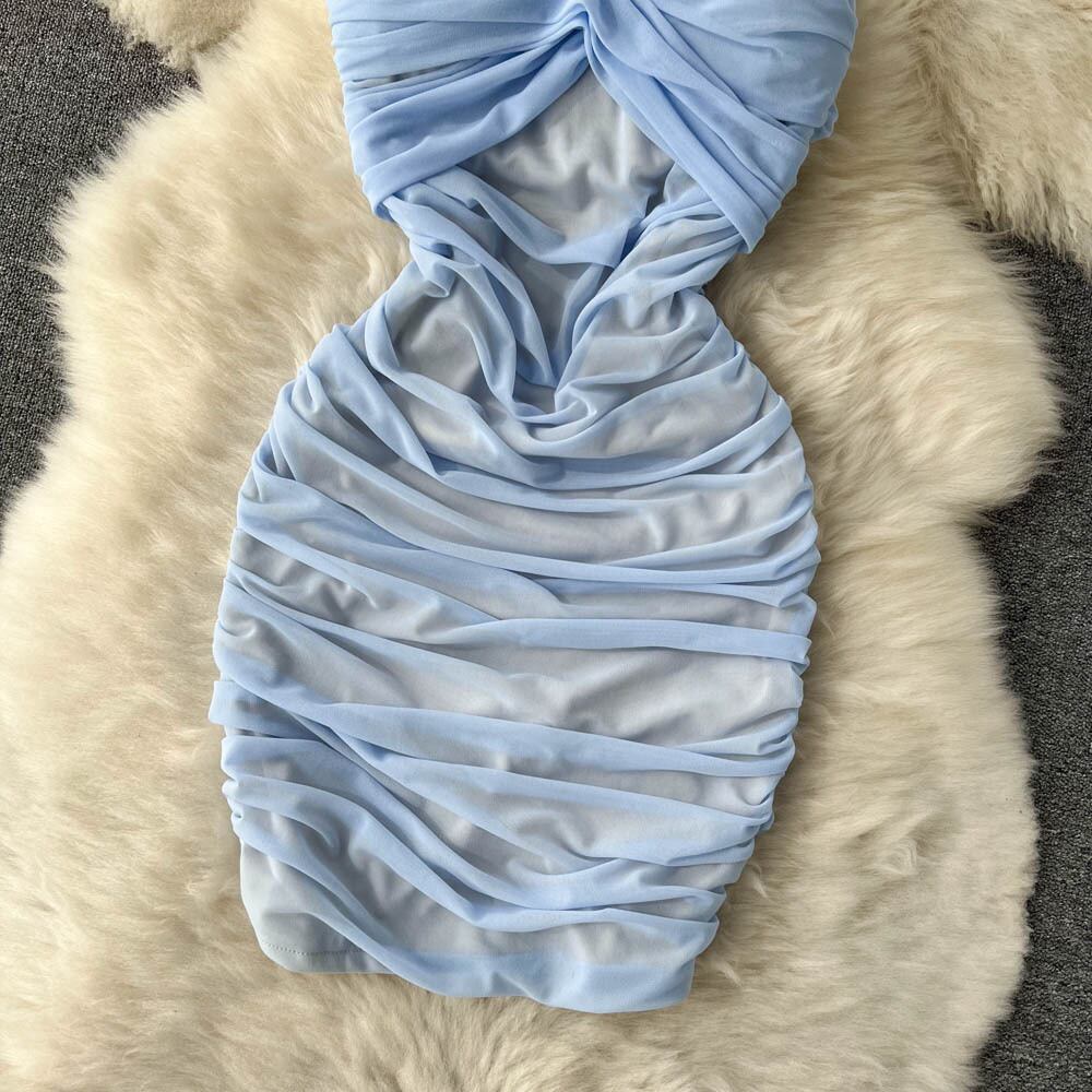 セクシーなホットな女の子の気質ホルターネックプリーツ巾着ドレスデザインセンスニッチたくらみバッグヒップ純粋な欲望小さなドレススカート ピュア lyxaj85750451319