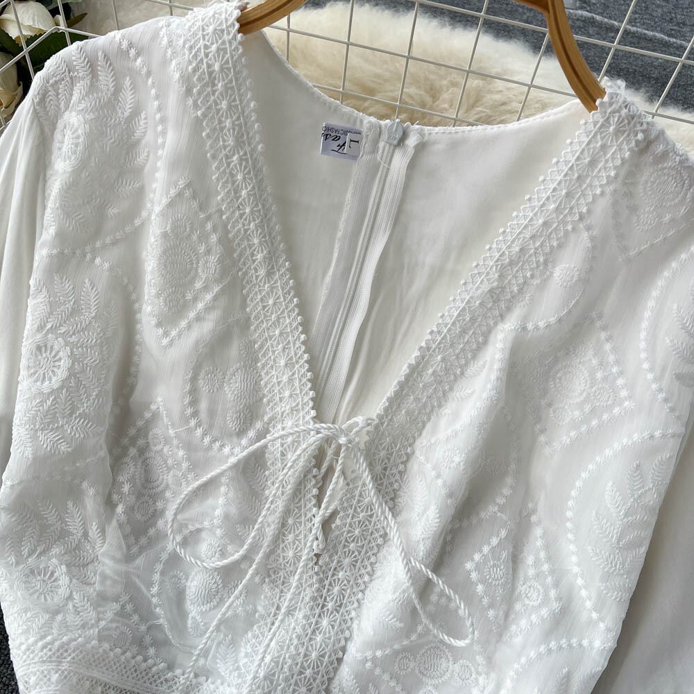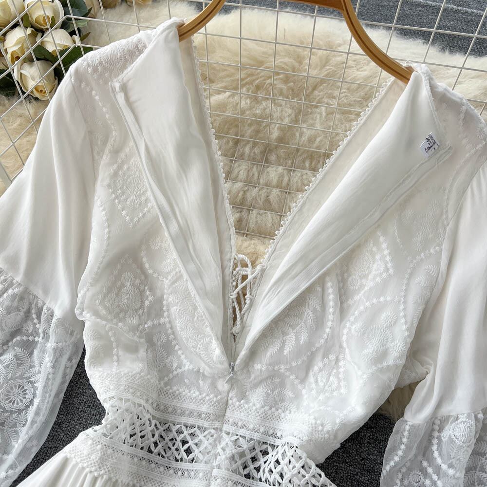 宮殿スタイルのドレスの韓国語バージョン女性の春と夏フランスのレトロな初恋甘くて優しいレース中空ジャカードロングスカート 大人ガーリー スウィート キュート カジュアル スプリング 春物 サマー 夏物 lyxaj1580316749