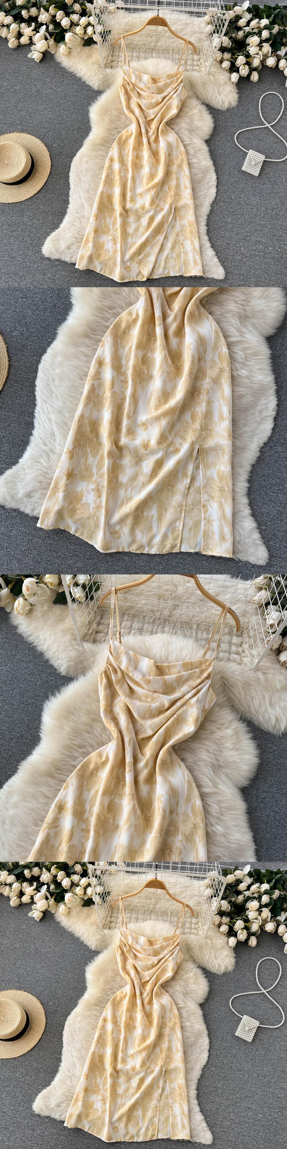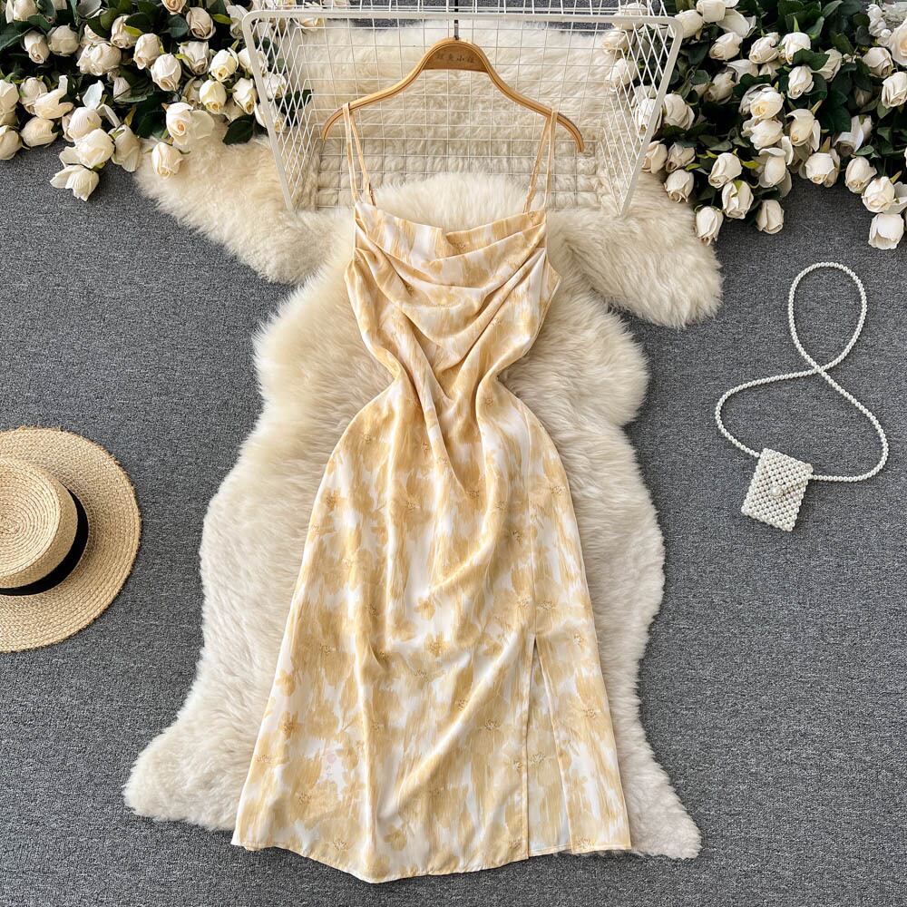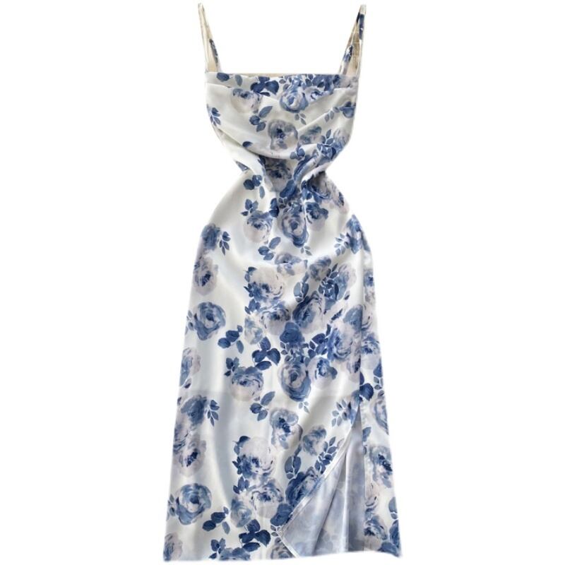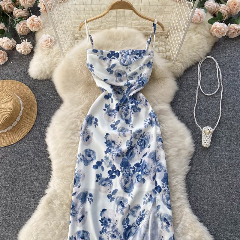 セクシーなオフショルダーのスリムフィットと薄いプリントのフェアリースカート2022年夏の新しい気質パッケージヒップなラインサスペンダードレス サマー 夏物 Aライン lyxaj12035627528