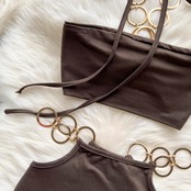 サマードレス新デザインセンスメタルリングハンギングネックセクシーチューブトップトップ+ハイウエストバッグヒップスカートツーピーストレンディスーツ ハイウェスト 夏物 指輪 lyxaj6147502364