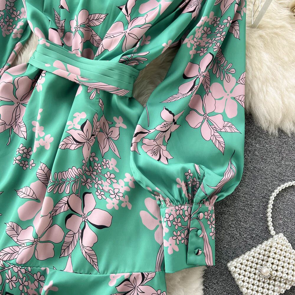 ヨーロッパの駅2022年春の新しいレトロなプリントレースアップ痩身エレガントな気質デザインセンスフリルドレス スプリング 春物 ヨーロピアン lyxaj70475397811