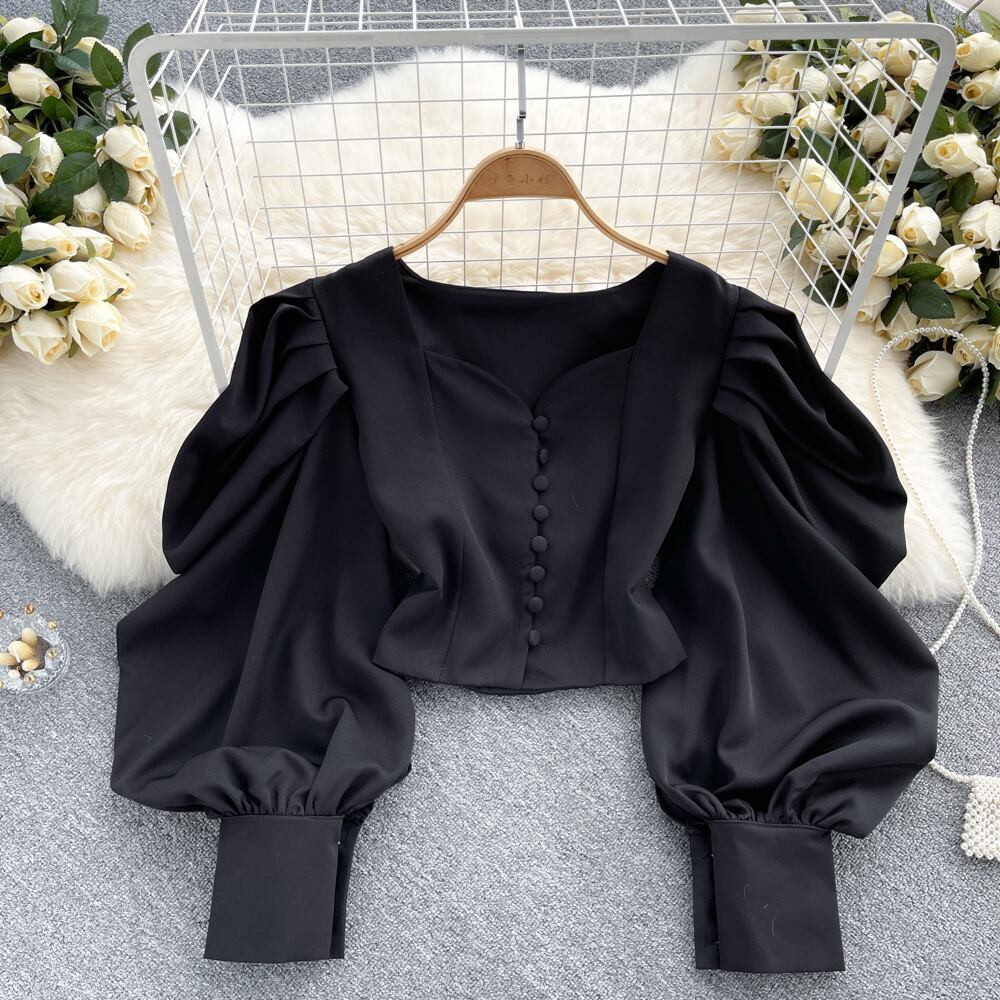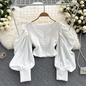フランスの甘くてシックなトップ2021年秋の新しい女性のデザイン小さな年齢を減らすパフスリーブ白いシャツ ホワイト 大人ガーリー スウィート キュート カジュアル オータム 秋物 lyxaj87159830194