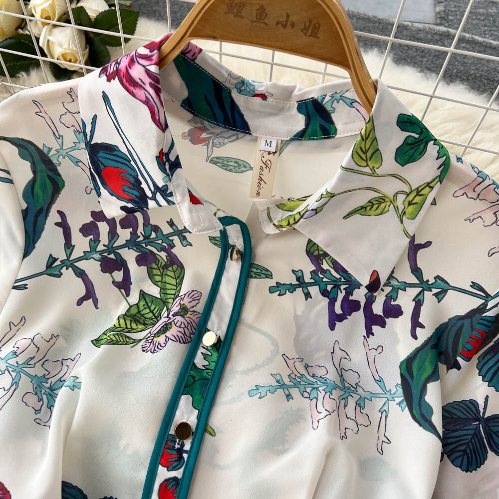 レトロフレンチニッチラペルプリントワンピースレディースサマーニューウエストウエストスリムスーパーフェアリー気質プリーツスカート 夏物 lyxaj86136126048