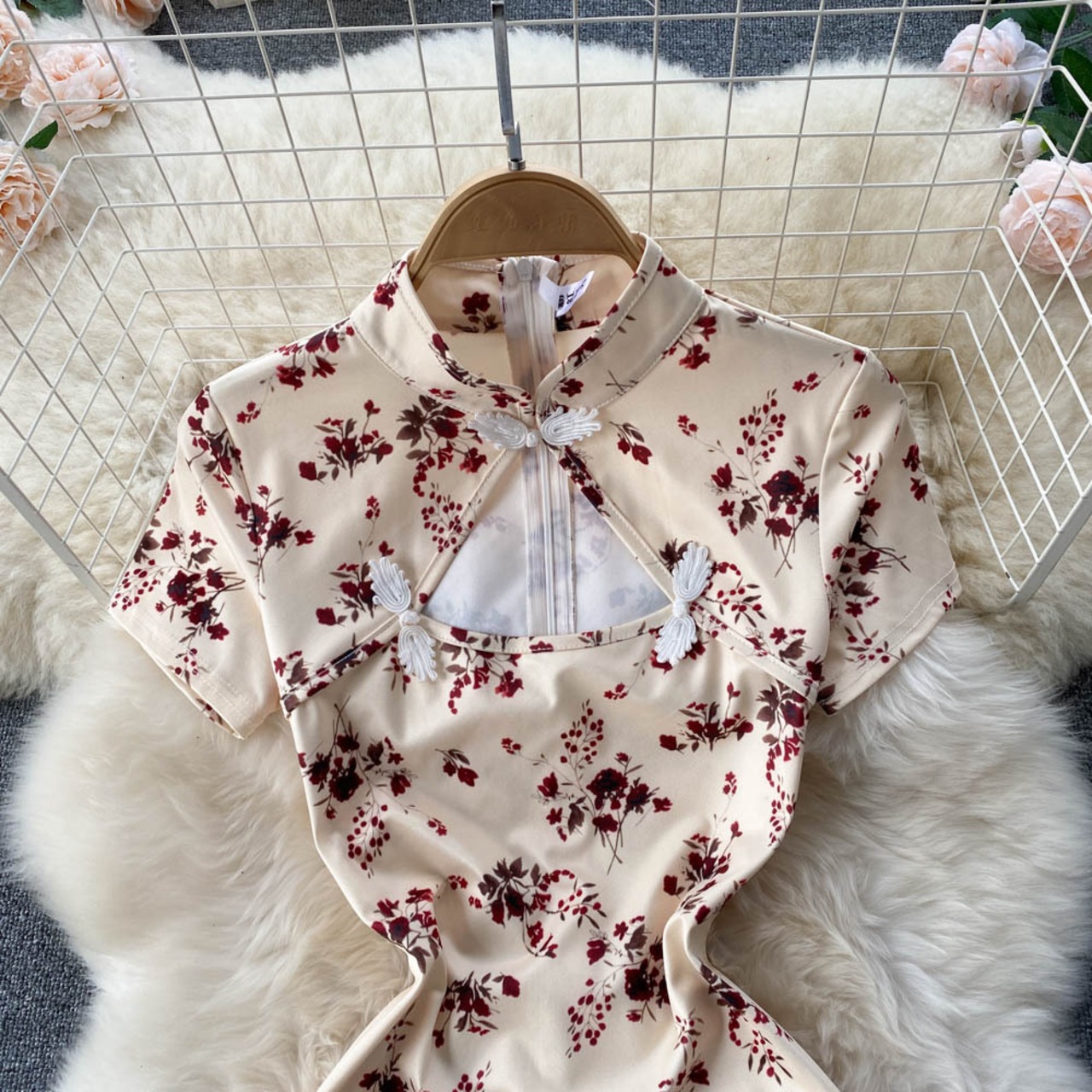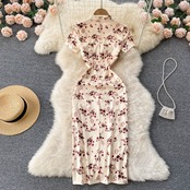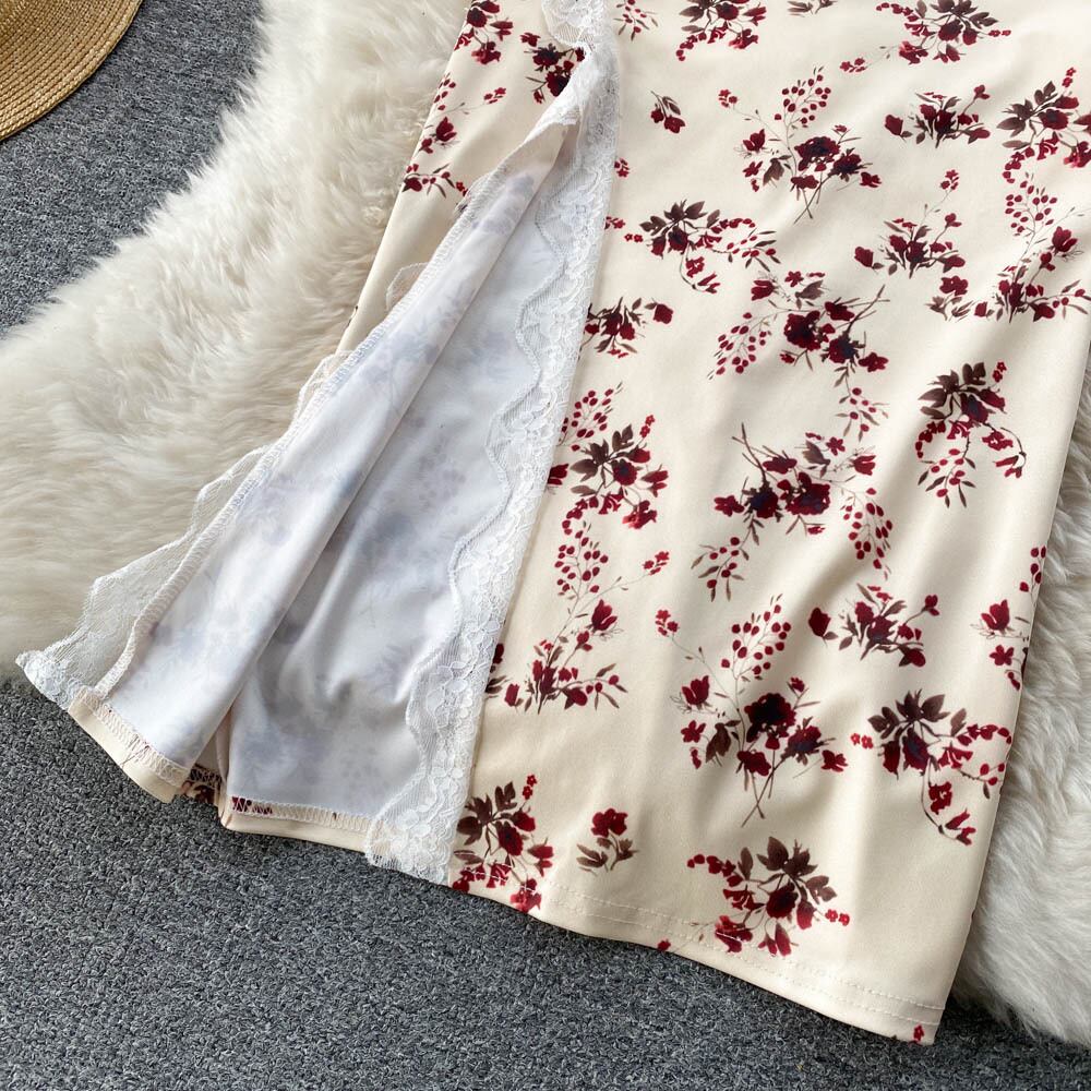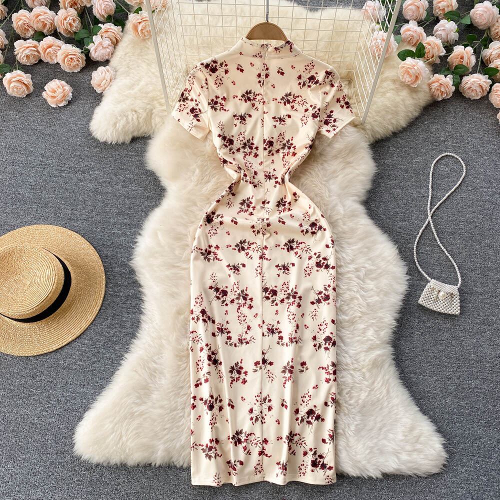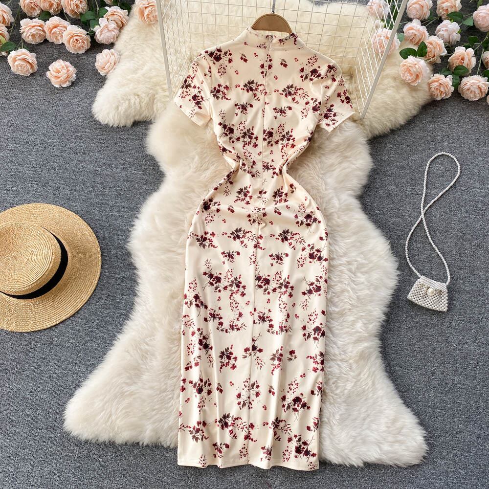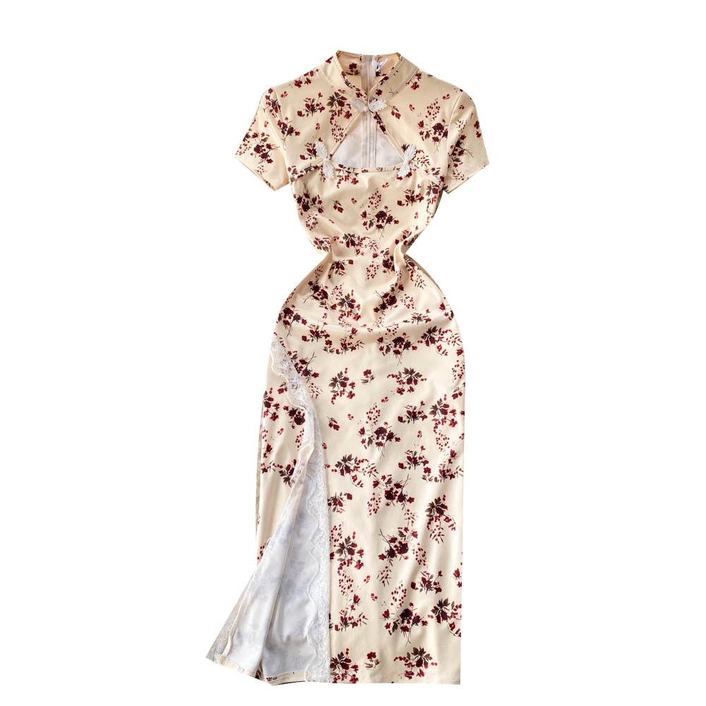 新しいナショナルスタイルの花柄スカートレトロフレンチドレスは薄いチャイナドレスウエストは薄いセクシーなバッグヒップスプリットスカートです lyxaj21504541892