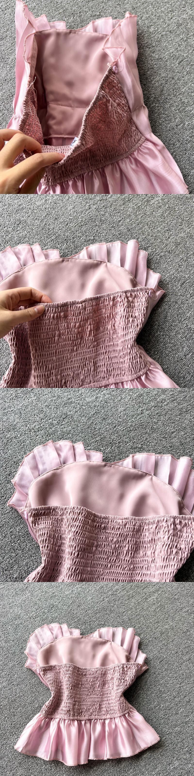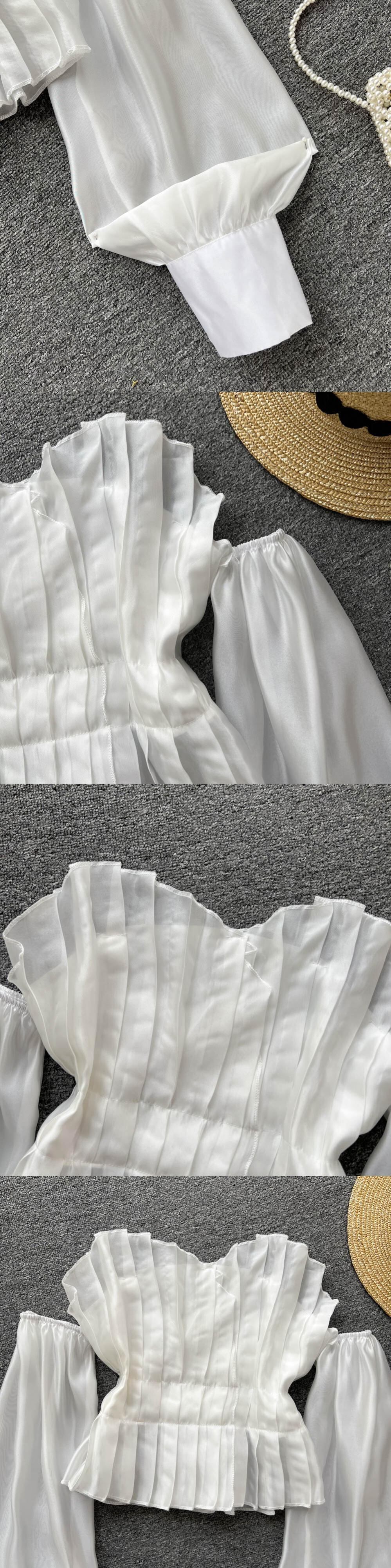 韓国スタイルのファッションデザインワンショルダーオフショルダーフレアスリーブスリムプリーツ胸ショートフレンチプリーツシャツ レッド lyxaj33647524969