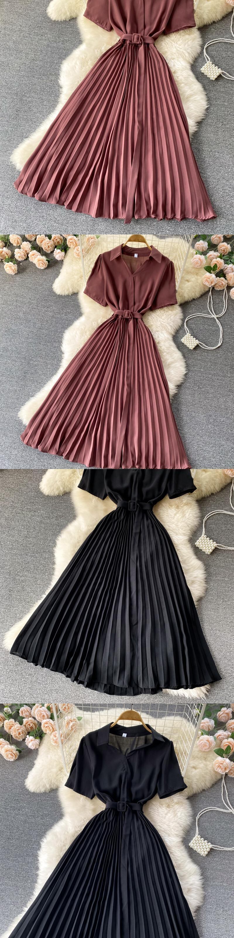 ヘップバーンスタイルのドレス女性2022年夏新気質ロイヤルシスターライトおなじみ風シフォンプリーツフレンチシャツスカート サマー 夏物 lyxaj10250617155
