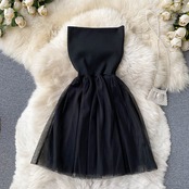 2022年新作チューブトップセクシー薄手ふわふわプリンセススカートスウィートメッシュショートスカート無地ウエスタン風ワンピース 大人ガーリー キュート カジュアル ソリッドカラー lyxaj98064127036