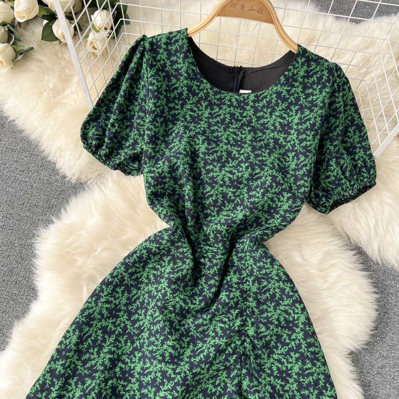 フランスのファッションラウンドネックフローラルスカート半袖2022年春の新韓国バージョンウエストスリムAラインドレストレンド ショート ハーフスリーブ スプリング 春物 花柄 Oネック lyxaj3366276906