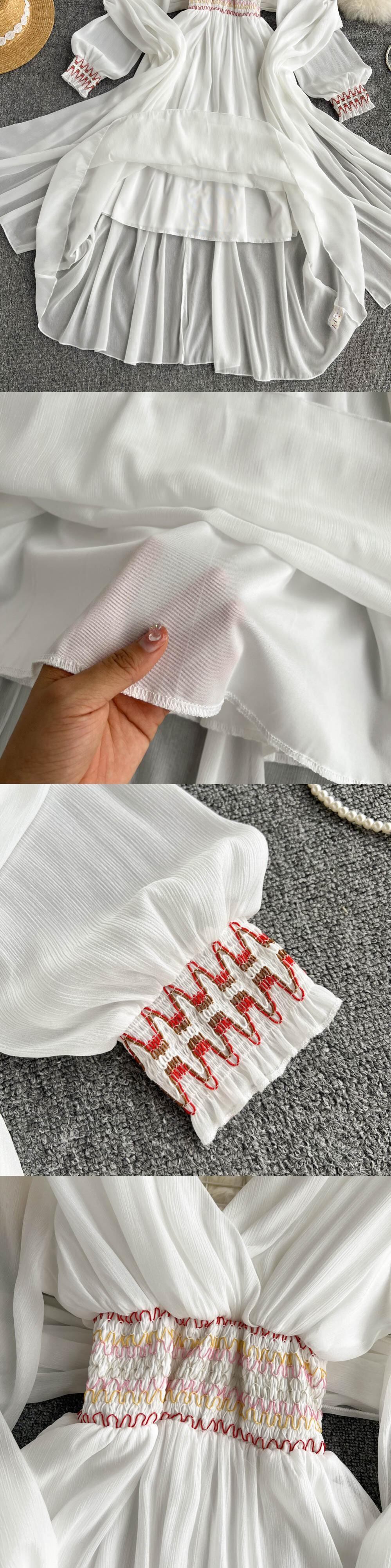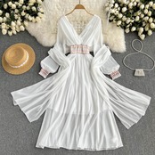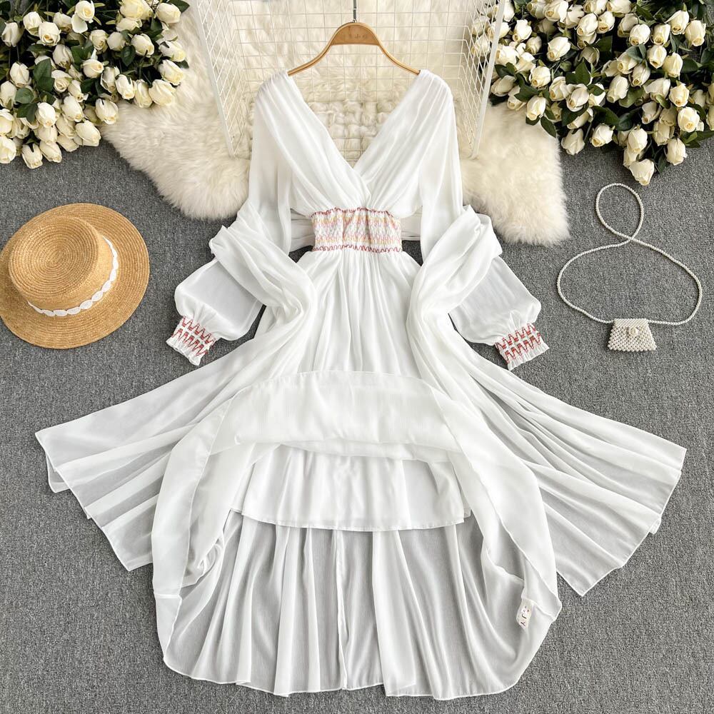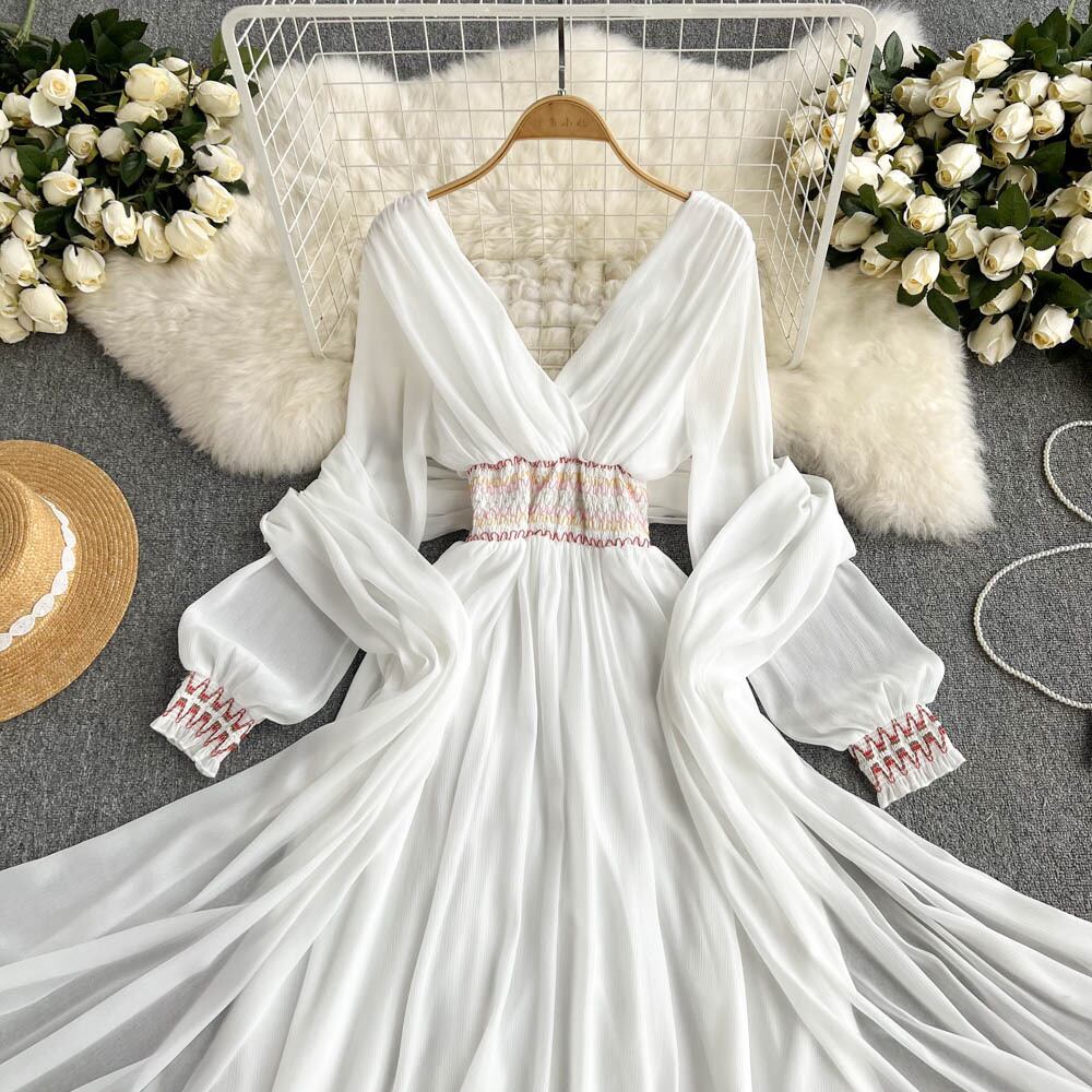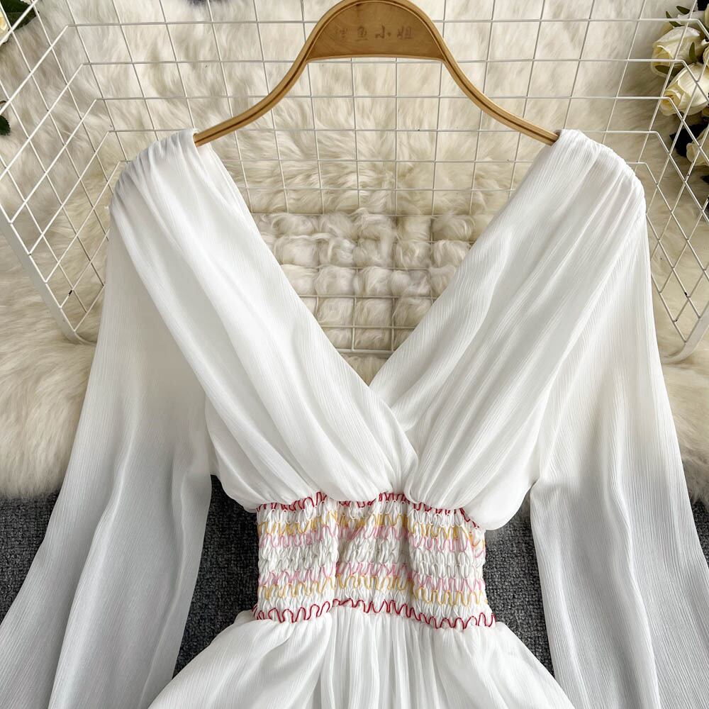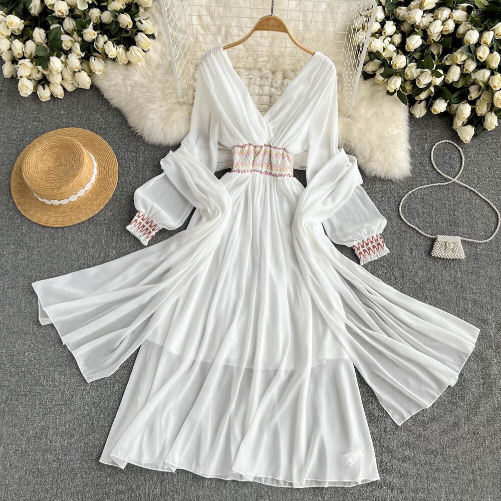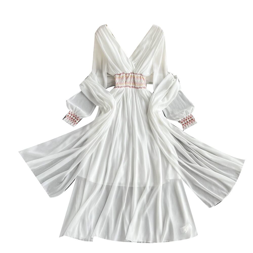 海辺の休暇旅行ドレス夏の新しい超妖精の女神気質Vネックウエストヒットカラーエレガントなロングスカート サマー 夏物 lyxaj9420745620