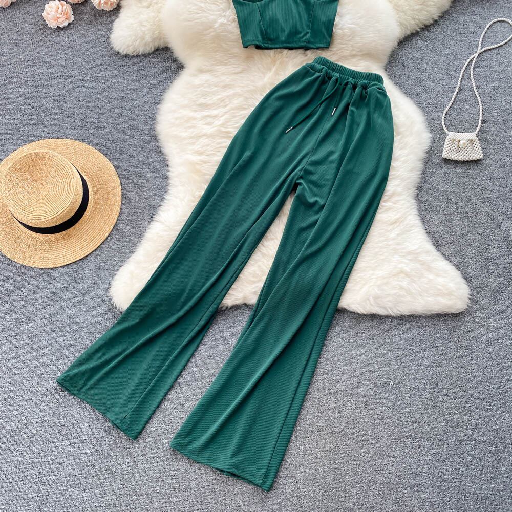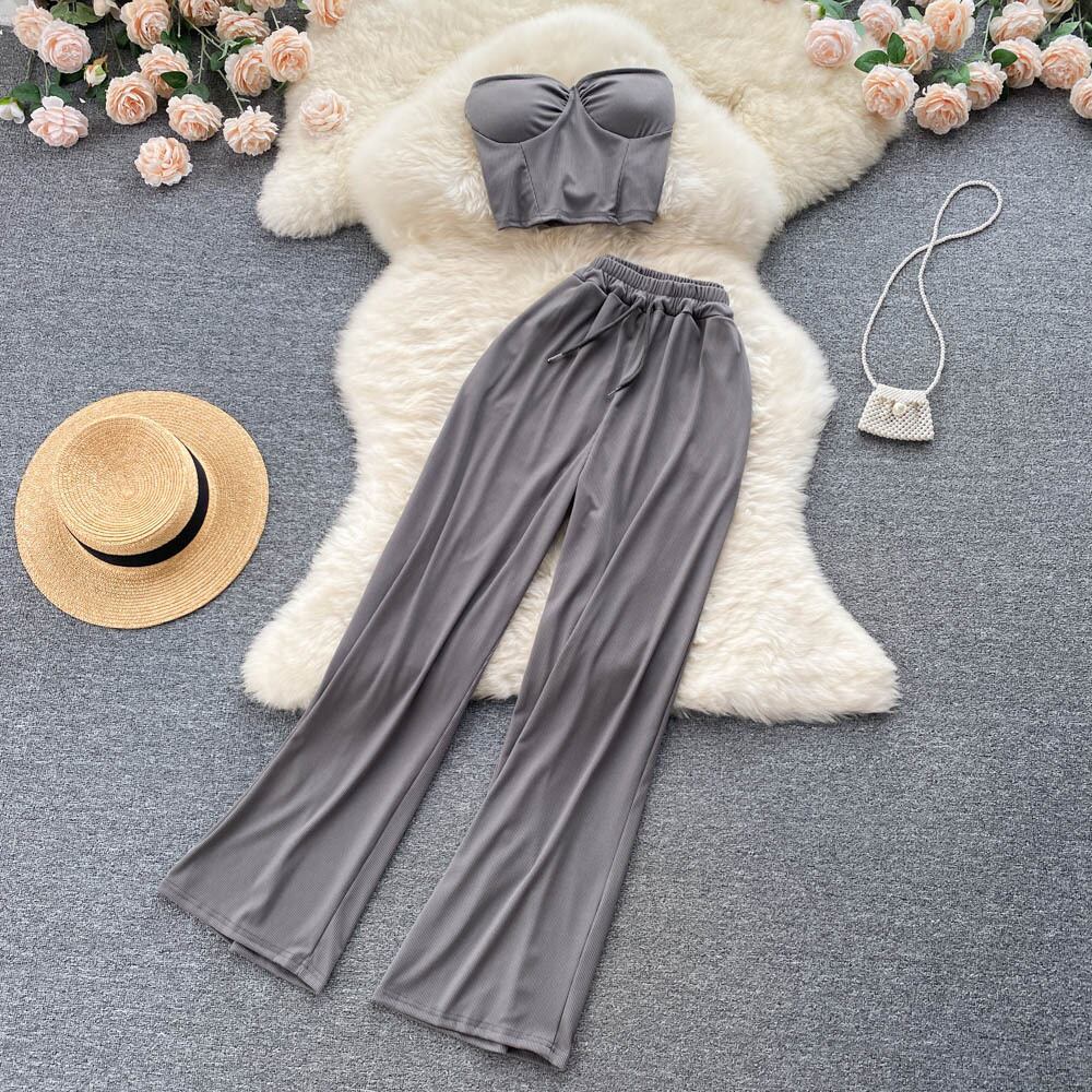 オールマッチセクシーなホットガールチューブトップトップラップチェストベスト女性のハイウエストドレープワイドレッグパンツ純粋な欲望ツーピーススーツ ハイウェスト ワイドパンツ ピュア lyxaj85837753219