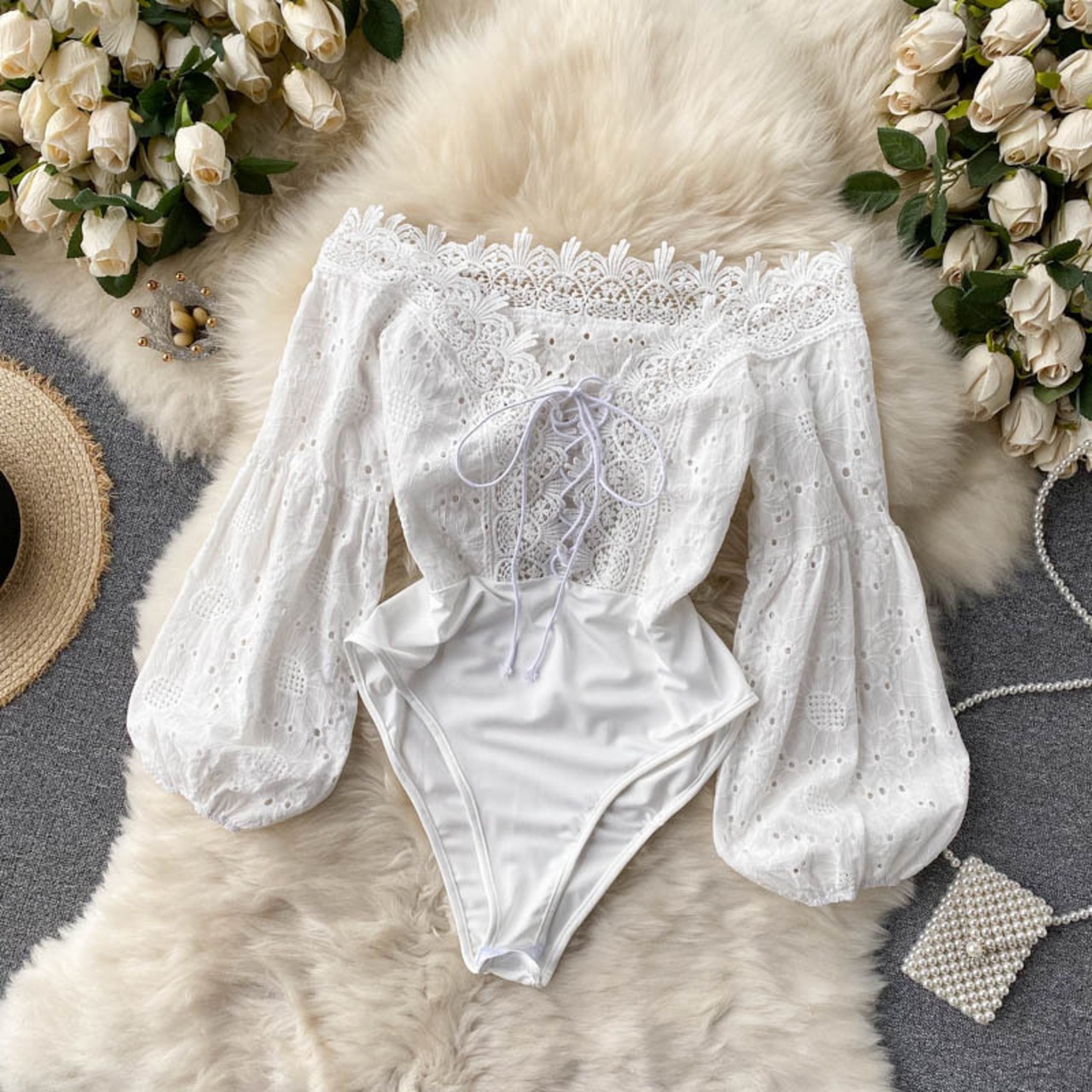 ヨーロッパとアメリカンスタイルの婦人服2021年の新しい春の服のデザインセンス中空パフスリーブセクシーなワンショルダーワンピースボディスーツ スプリング 春物 ヨーロピアン lyxaj95089035313