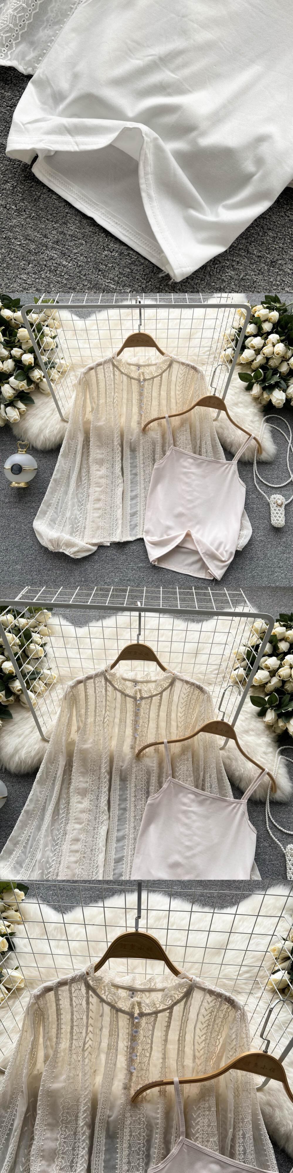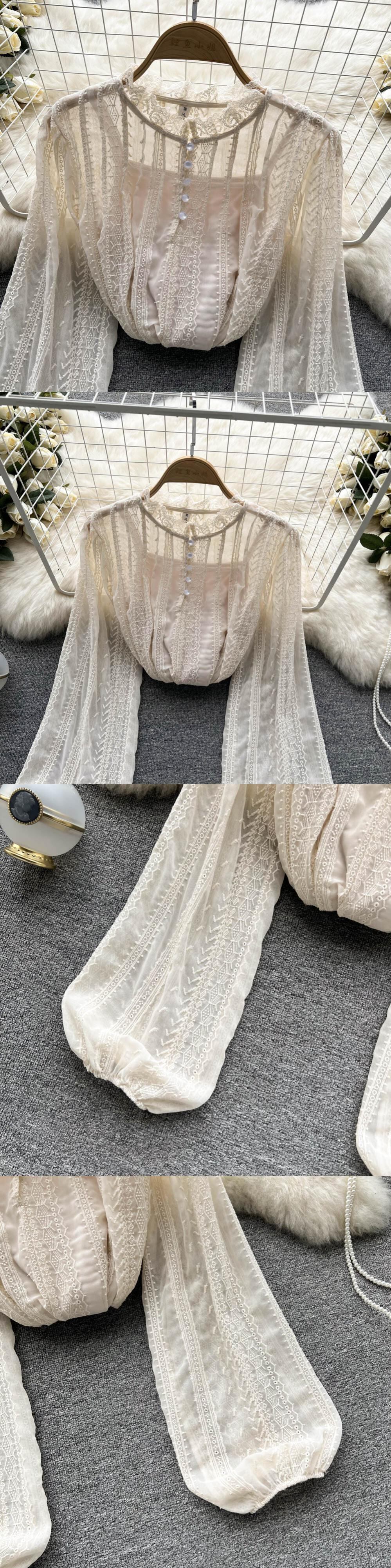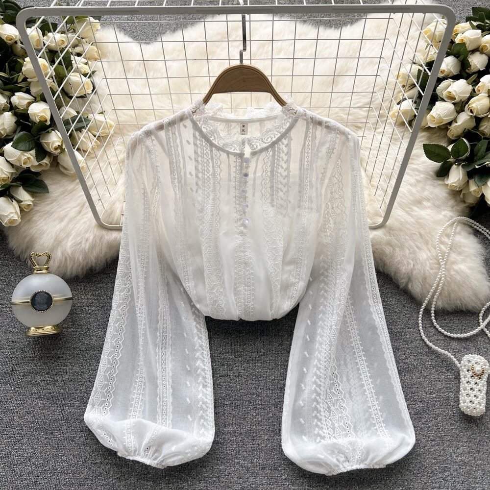 韓国のレースシャツトップ2022年春の新しい絶妙なレースの刺繡年齢を減らすエレガントな気質の甘いシャツの女性 刺繍 大人ガーリー スウィート キュート カジュアル スプリング 春物 lyxaj34757906880