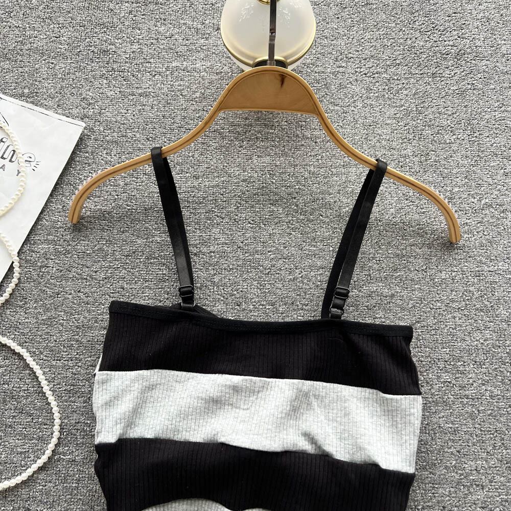 春先と夏の新しいコントラストカラーは、胸パッドホットガールセクシーショートトップと小さなキャミソール女性のアウターウェアをクロスします スプリング 春物 サマー 夏物 lyxaj54413407061