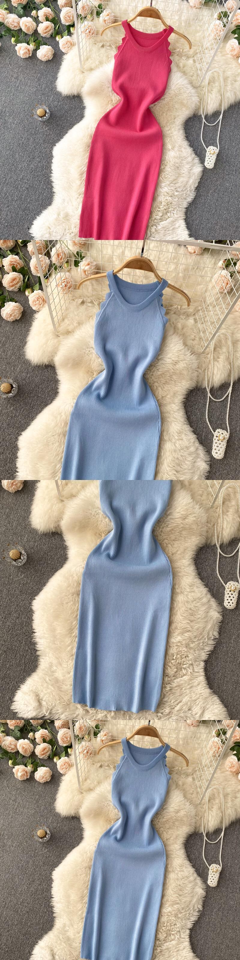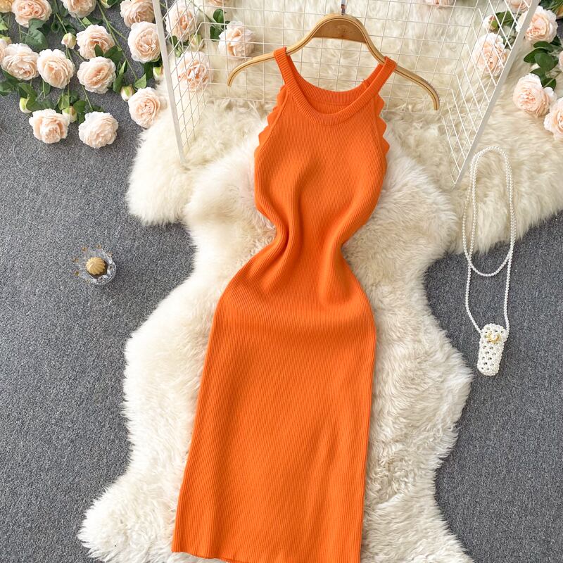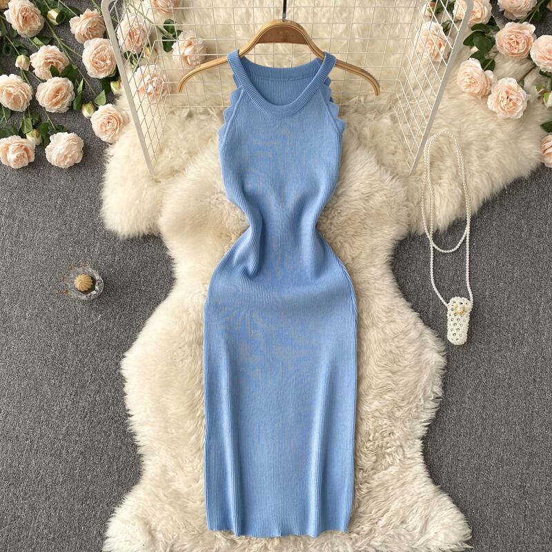 デザインセンスホルターネックキャミソールドレス女性フレンチレトロ女神ファン気質スリムスリムニットスカート lyxaj68388183266