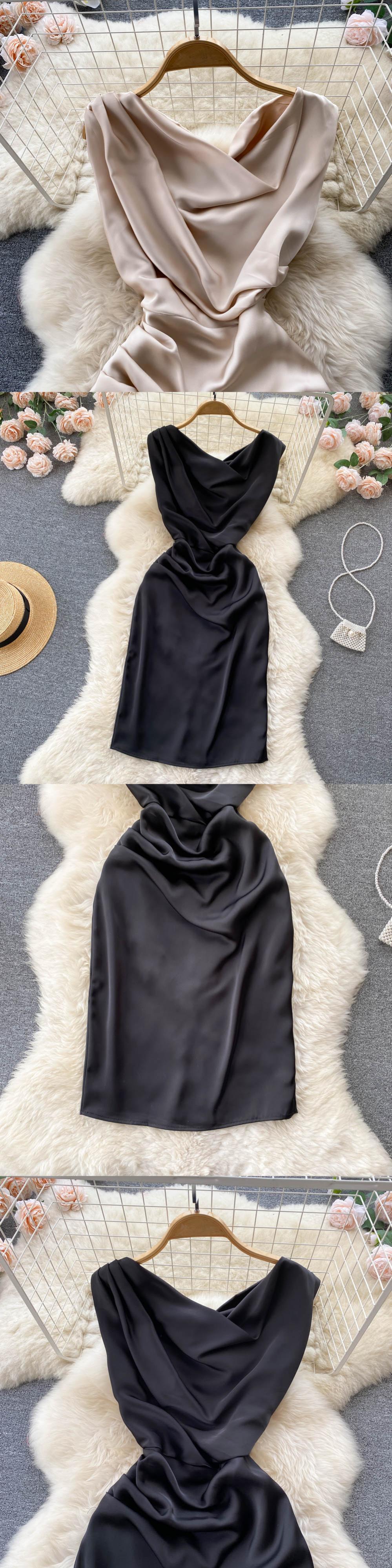 フレンチサテンスイングカラードレス2022新しいサマーライトラグジュアリーハイデザインスモールノースリーブドレス 夏物 lyxaj95171010482